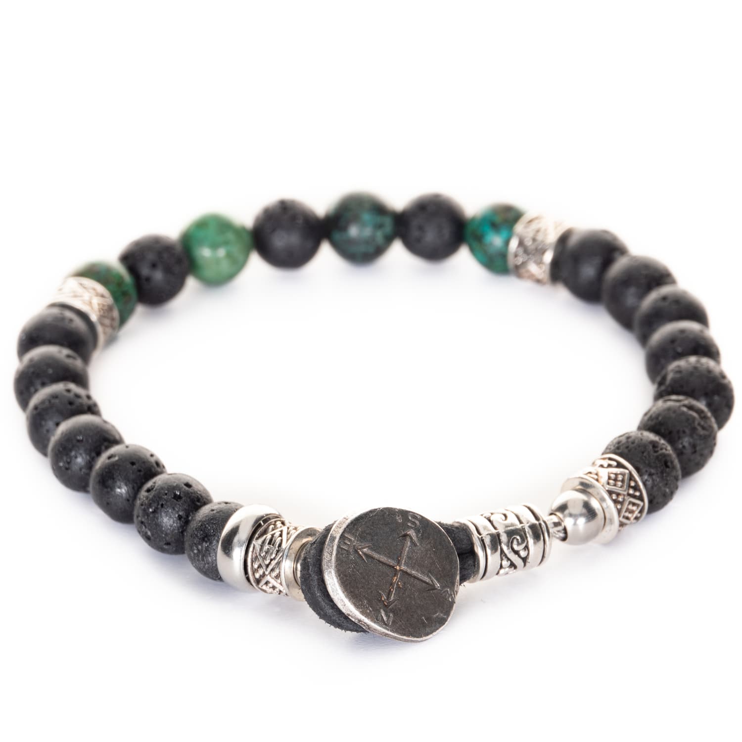 - Kontrast aus dunklen Steinperlen und metallischen Akzenten