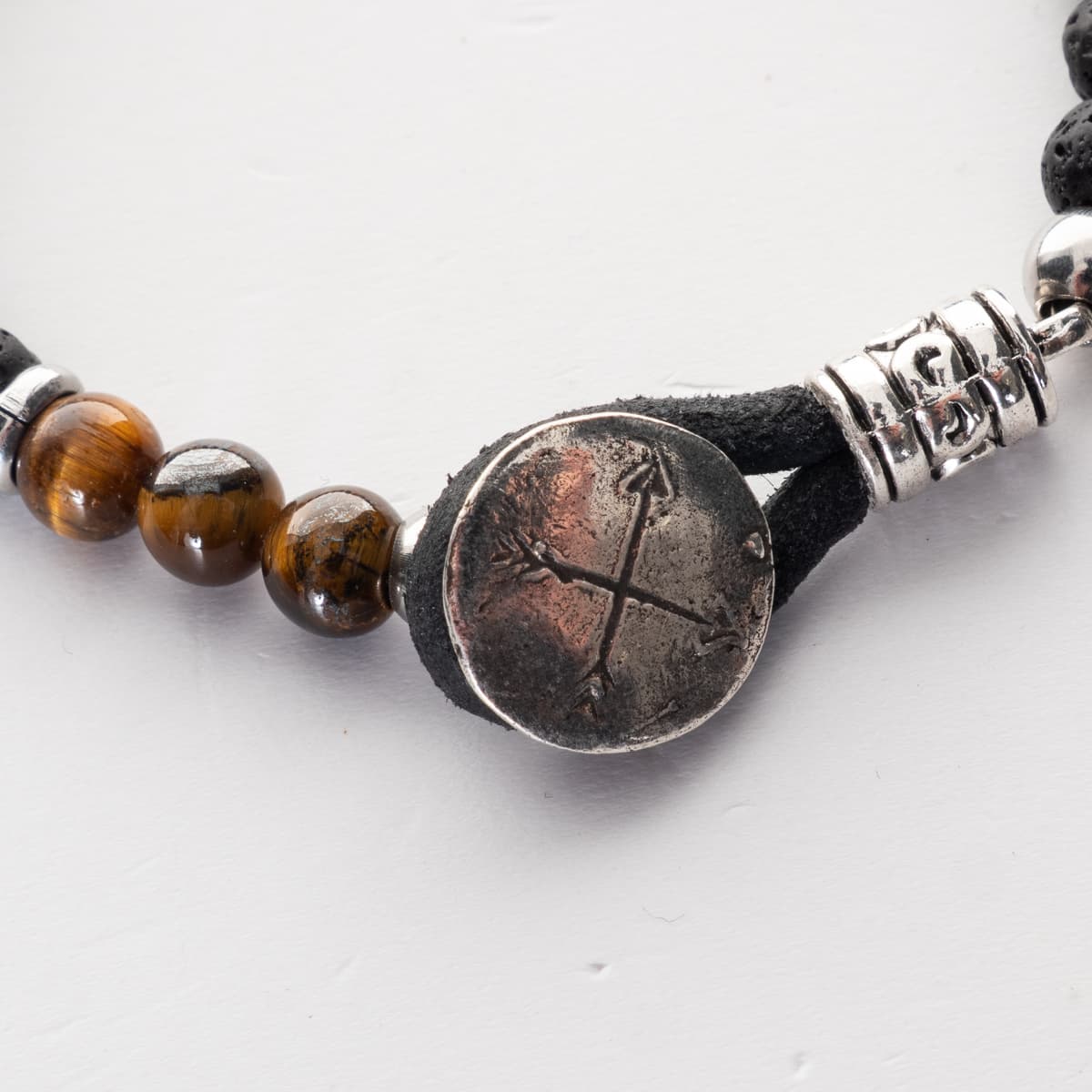 - Material: Leder, Tigerauge, Achat, Vulkangestein, Metall