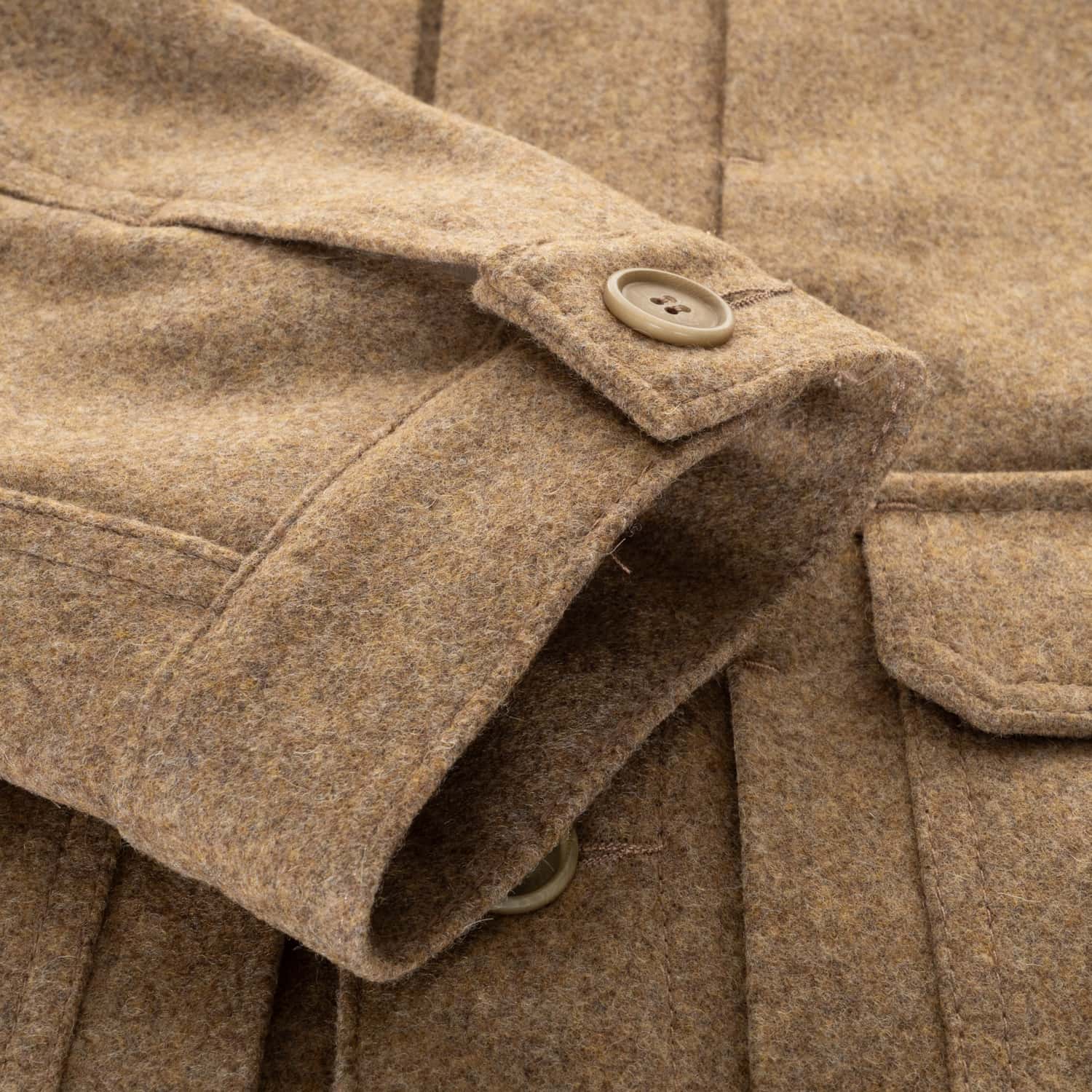 Die klassische Wolljacke von Blaumann Jeanshosen ist aus original bayerischem Loden gefertigt – einem traditionsreichen Tuch aus 100 % Wolle (Schurwolle), das durch seine windabweisenden und temperaturregulierenden Eigenschaften überzeugt. Das Innenfutter besteht aus reiner Baumwolle und sorgt für ein angenehmes Tragegefühl. Mit typischen aufgesetzten Pattentaschen, geradem Schnitt und markantem Kragen kombiniert die Jacke Funktionalität mit zeitloser Ästhetik. Inspiriert vom 1940er Battledress der Royal air Force verbindet Sie Heritage mit Funktionalität und top Qualität. Die Knöpfe sind farblich abgestimmt, während ein dezentes Label an der Tasche angebracht wurde. In Deutschland gewebt und gefertigt.