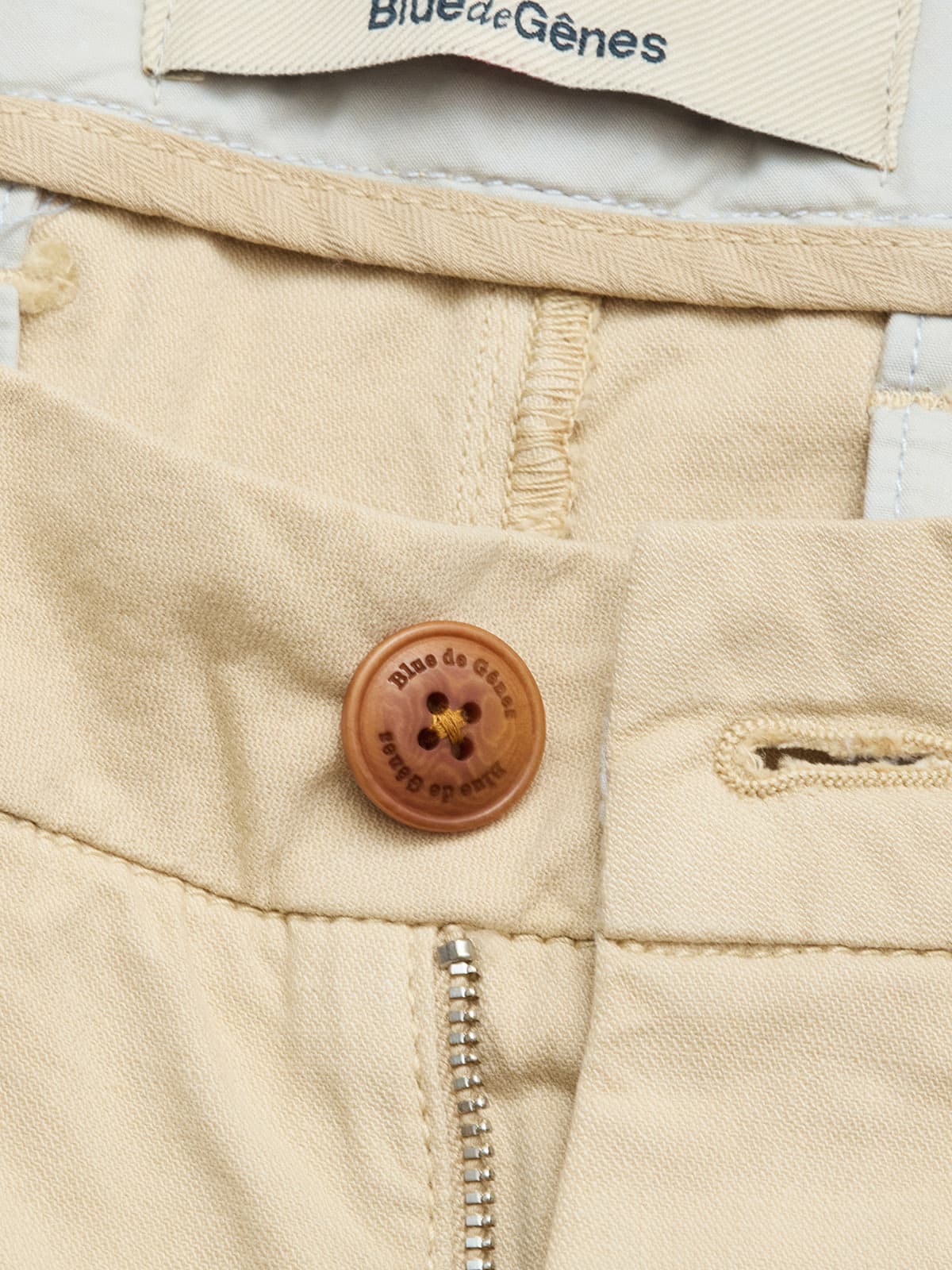 Vor über 400 Jahren stellten die Hafenarbeiter in Genua, robuste Kleidung aus arabischer Baumwolle, genannt‚ ‚Geanes fustian‘, her. Mit Indigo blau gefärbt eignete sich das strapazierfähige Material ideal für die Hafenarbeit. Das ‚Blau aus Genua‘ – ‚Bleu de Gênes‘ wird in die ganze Welt exportiert und macht die ‚Blue Jeans‘ weltbekannt. Diese Geschichte inspirierte eine wunderschönen Denim-Brand aus Dänemark zu ihrem Namen: Blue de Gênes. „Hier fließt Indigo durch die Adern“, scherzt man. Doch es stimmt. Man merkt jeder einzelnen Denim an, wie viel Herzblut in ihr steckt. In einer kleinen Denimfabrik in Firenze, Italien, werden die Denims liebevoll von Hand gefertigt. Individuelle Details, persönlich signierte Labels und historische Herstellungsweisen, wie verstärkte Hintertaschen und alte Nieten, verweisen auf eine andere Zeit, in der die Denimproduktion noch echte Handwerkskunst war. Durch die Kombination von klassischen, traditionellen Werten und der Neudefinierung des stylischen, modernen Mannes entsteht ein authentischer, raffinierter und doch kerniger Vintage-Look.