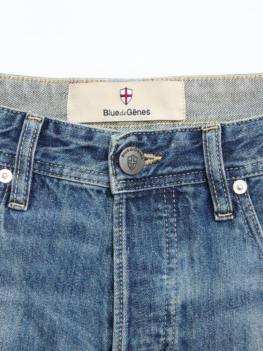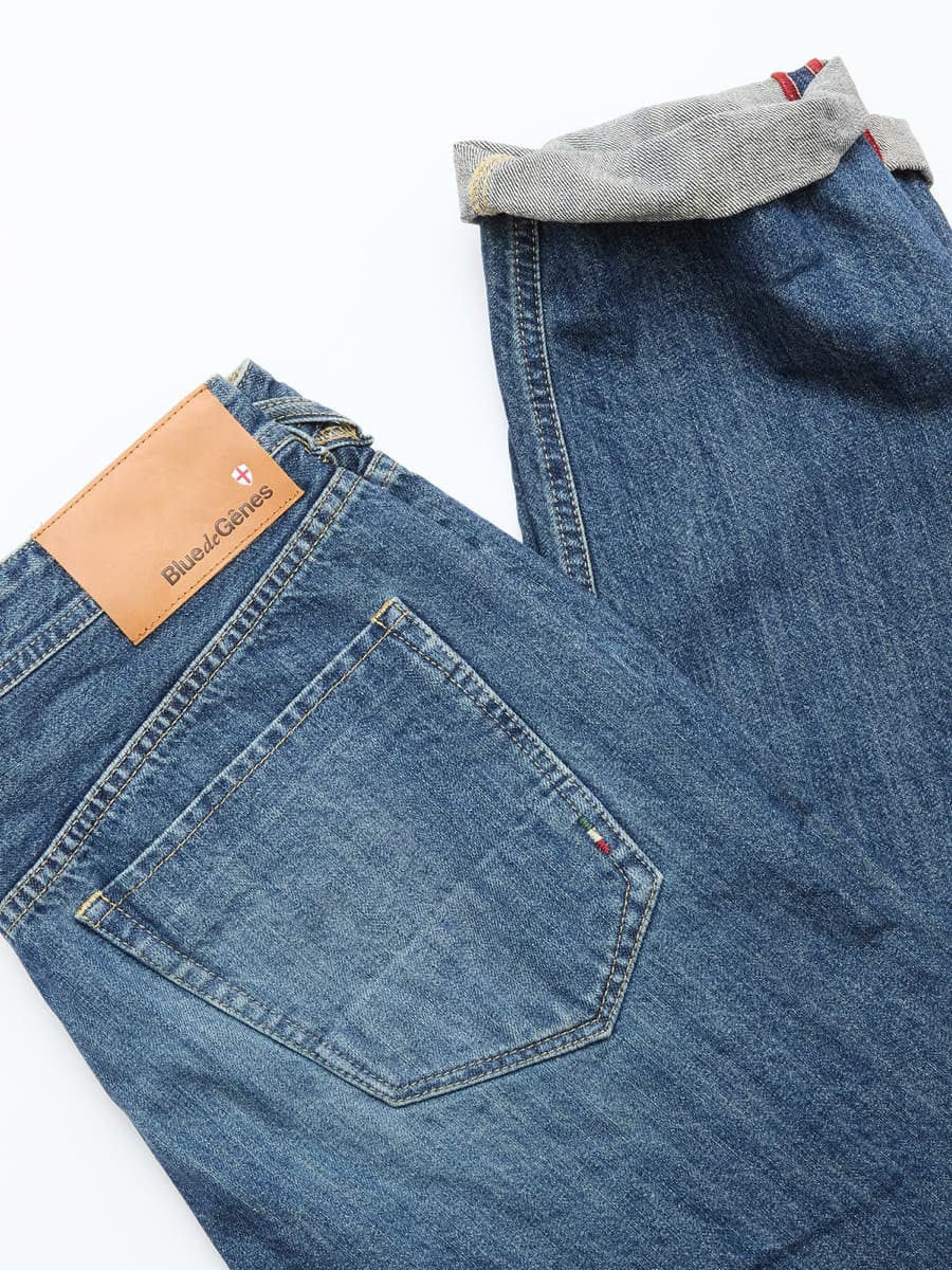 Vor über 400 Jahren stellten die Hafenarbeiter in Genua, robuste Kleidung aus arabischer Baumwolle, genannt‚ ‚Geanes fustian‘, her. Mit Indigo blau gefärbt eignete sich das strapazierfähige Material ideal für die Hafenarbeit. Das ‚Blau aus Genua‘ – ‚Bleu de Gênes‘ wird in die ganze Welt exportiert und macht die ‚Blue Jeans‘ weltbekannt. Diese Geschichte inspirierte eine wunderschönen Denim-Brand aus Dänemark zu ihrem Namen: Blue de Gênes. „Hier fließt Indigo durch die Adern“, scherzt man. Doch es stimmt. Man merkt jeder einzelnen Denim an, wie viel Herzblut in ihr steckt. In einer kleinen Denimfabrik in Firenze, Italien, werden die Denims liebevoll von Hand gefertigt. Individuelle Details, persönlich signierte Labels und historische Herstellungsweisen, wie verstärkte Hintertaschen und alte Nieten, verweisen auf eine andere Zeit, in der die Denimproduktion noch echte Handwerkskunst war. Durch die Kombination von klassischen, traditionellen Werten und der Neudefinierung des stylischen, modernen Mannes entsteht ein authentischer, raffinierter und doch kerniger Vintage-Look.