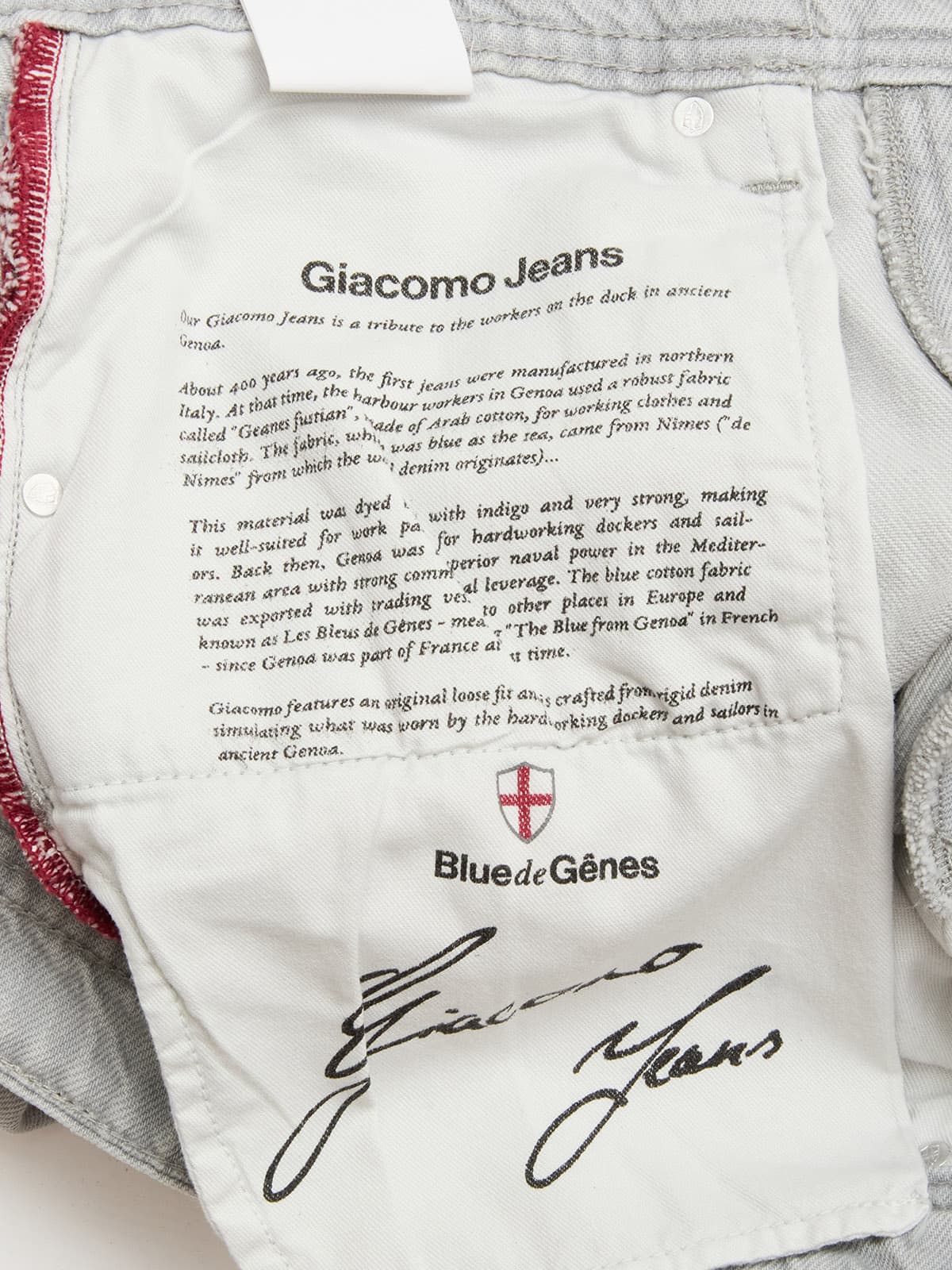 Vor über 400 Jahren stellten die Hafenarbeiter in Genua, robuste Kleidung aus arabischer Baumwolle, genannt‚ ‚Geanes fustian‘, her. Mit Indigo blau gefärbt eignete sich das strapazierfähige Material ideal für die Hafenarbeit. Das ‚Blau aus Genua‘ – ‚Bleu de Gênes‘ wird in die ganze Welt exportiert und macht die ‚Blue Jeans‘ weltbekannt. Diese Geschichte inspirierte eine wunderschönen Denim-Brand aus Dänemark zu ihrem Namen: Blue de Gênes. „Hier fließt Indigo durch die Adern“, scherzt man. Doch es stimmt. Man merkt jeder einzelnen Denim an, wie viel Herzblut in ihr steckt. In einer kleinen Denimfabrik in Firenze, Italien, werden die Denims liebevoll von Hand gefertigt. Individuelle Details, persönlich signierte Labels und historische Herstellungsweisen, wie verstärkte Hintertaschen und alte Nieten, verweisen auf eine andere Zeit, in der die Denimproduktion noch echte Handwerkskunst war. Durch die Kombination von klassischen, traditionellen Werten und der Neudefinierung des stylischen, modernen Mannes entsteht ein authentischer, raffinierter und doch kerniger Vintage-Look.