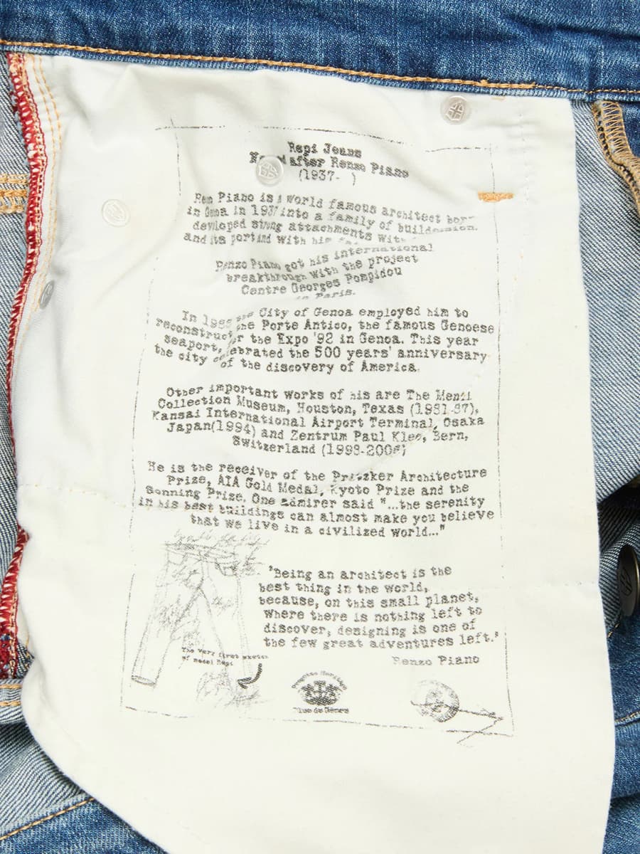 Gefertigt aus einem robusten Comfort-Stretch-Denim mit einem Gewicht von 11,6 oz bietet die Repi Jeans Stabilität und angenehme Bewegungsfreiheit. Klassische Five-Pocket-Details werden durch asymmetrische Gesäßtaschen, verstärkte Partien und Reparaturdetails an der Coin Pocket sowie der hinteren Gürtelschlaufe ergänzt. Die im Taschenfutter gedruckte Geschichte von Repi – eine Hommage an den italienischen Architekten Renzo Piano – unterstreicht den charakterstarken, authentischen Anspruch dieses Modells.