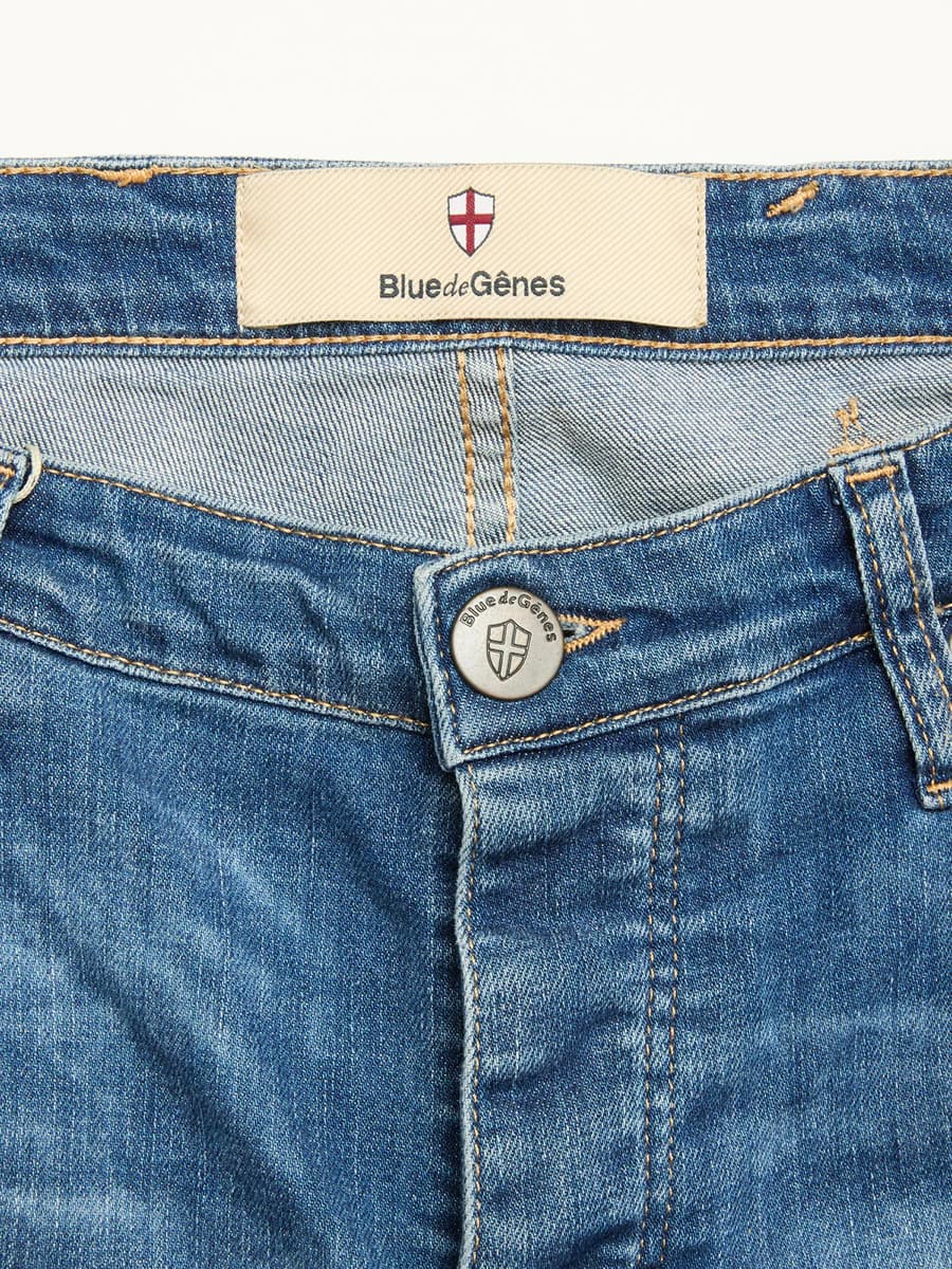 Vor über 400 Jahren stellten die Hafenarbeiter in Genua, robuste Kleidung aus arabischer Baumwolle, genannt‚ ‚Geanes fustian‘, her. Mit Indigo blau gefärbt eignete sich das strapazierfähige Material ideal für die Hafenarbeit. Das ‚Blau aus Genua‘ – ‚Bleu de Gênes‘ wird in die ganze Welt exportiert und macht die ‚Blue Jeans‘ weltbekannt. Diese Geschichte inspirierte eine wunderschönen Denim-Brand aus Dänemark zu ihrem Namen: Blue de Gênes. „Hier fließt Indigo durch die Adern“, scherzt man. Doch es stimmt. Man merkt jeder einzelnen Denim an, wie viel Herzblut in ihr steckt. In einer kleinen Denimfabrik in Firenze, Italien, werden die Denims liebevoll von Hand gefertigt. Individuelle Details, persönlich signierte Labels und historische Herstellungsweisen, wie verstärkte Hintertaschen und alte Nieten, verweisen auf eine andere Zeit, in der die Denimproduktion noch echte Handwerkskunst war. Durch die Kombination von klassischen, traditionellen Werten und der Neudefinierung des stylischen, modernen Mannes entsteht ein authentischer, raffinierter und doch kerniger Vintage-Look.