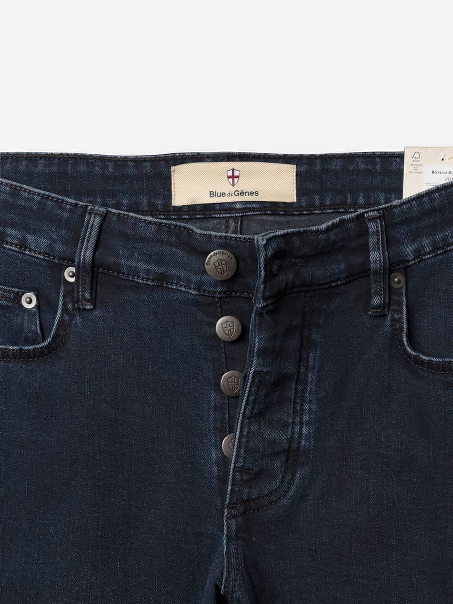 Vor über 400 Jahren stellten die Hafenarbeiter in Genua, robuste Kleidung aus arabischer Baumwolle, genannt‚ ‚Geanes fustian‘, her. Mit Indigo blau gefärbt eignete sich das strapazierfähige Material ideal für die Hafenarbeit. Das ‚Blau aus Genua‘ – ‚Bleu de Gênes‘ wird in die ganze Welt exportiert und macht die ‚Blue Jeans‘ weltbekannt. Diese Geschichte inspirierte eine wunderschönen Denim-Brand aus Dänemark zu ihrem Namen: Blue de Gênes. „Hier fließt Indigo durch die Adern“, scherzt man. Doch es stimmt. Man merkt jeder einzelnen Denim an, wie viel Herzblut in ihr steckt. In einer kleinen Denimfabrik in Firenze, Italien, werden die Denims liebevoll von Hand gefertigt. Individuelle Details, persönlich signierte Labels und historische Herstellungsweisen, wie verstärkte Hintertaschen und alte Nieten, verweisen auf eine andere Zeit, in der die Denimproduktion noch echte Handwerkskunst war. Durch die Kombination von klassischen, traditionellen Werten und der Neudefinierung des stylischen, modernen Mannes entsteht ein authentischer, raffinierter und doch kerniger Vintage-Look.