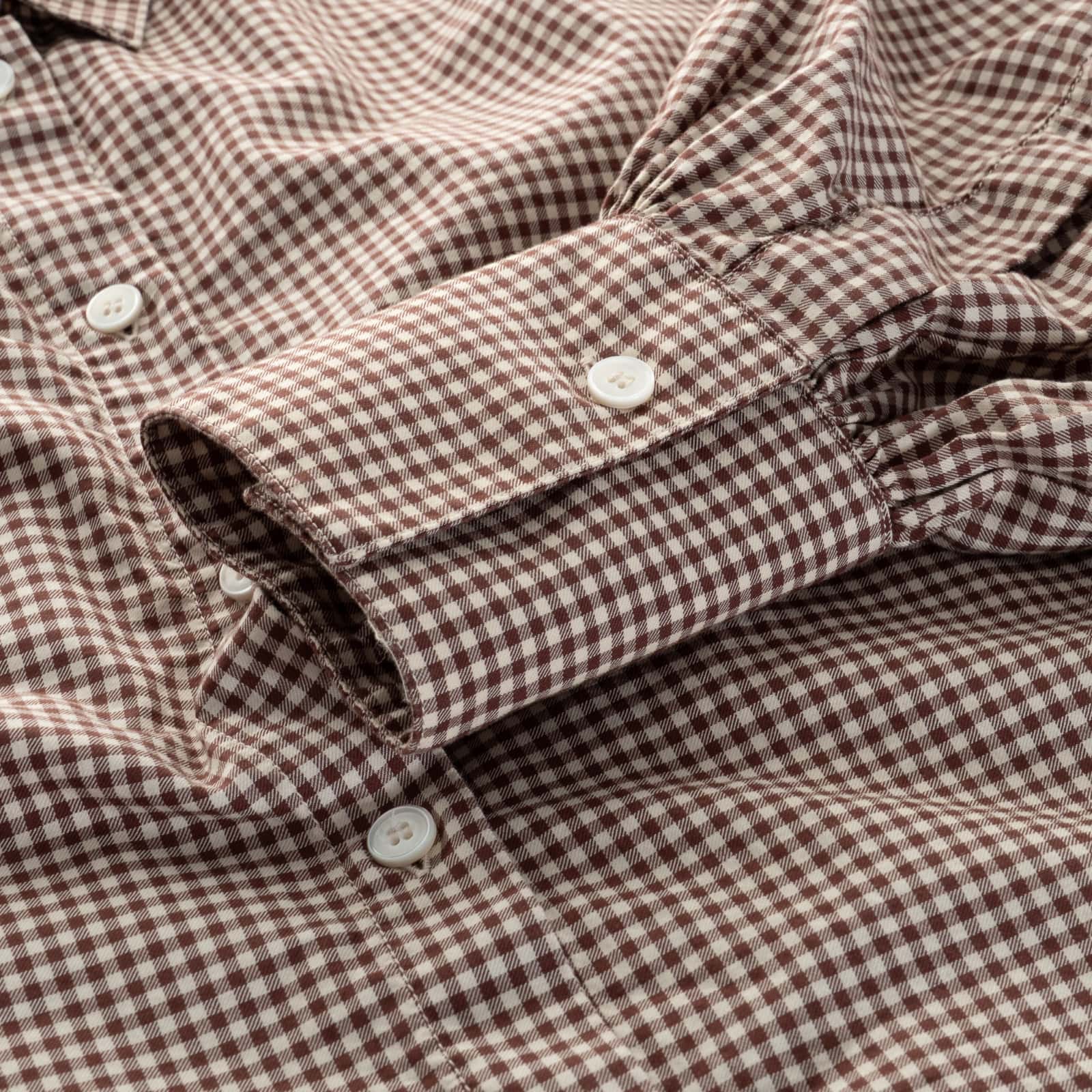 Locker geschnittene Damenbluse von Academia aus 100 % Baumwolle. Das Modell besticht durch sein zeitloses Karomuster in Braun oder Grün und ist aus leichtem, atmungsaktivem Baumwollgewebe gefertigt. Mit Hemdkragen, durchgehender Knopfleiste und leicht gerafften Schultern für eine feminine Silhouette. Die langen Ärmel enden in breiten Manschetten mit Knopfverschluss. Ein verlängertes Rückenteil sorgt für zusätzlichen Komfort und Bewegungsfreiheit.