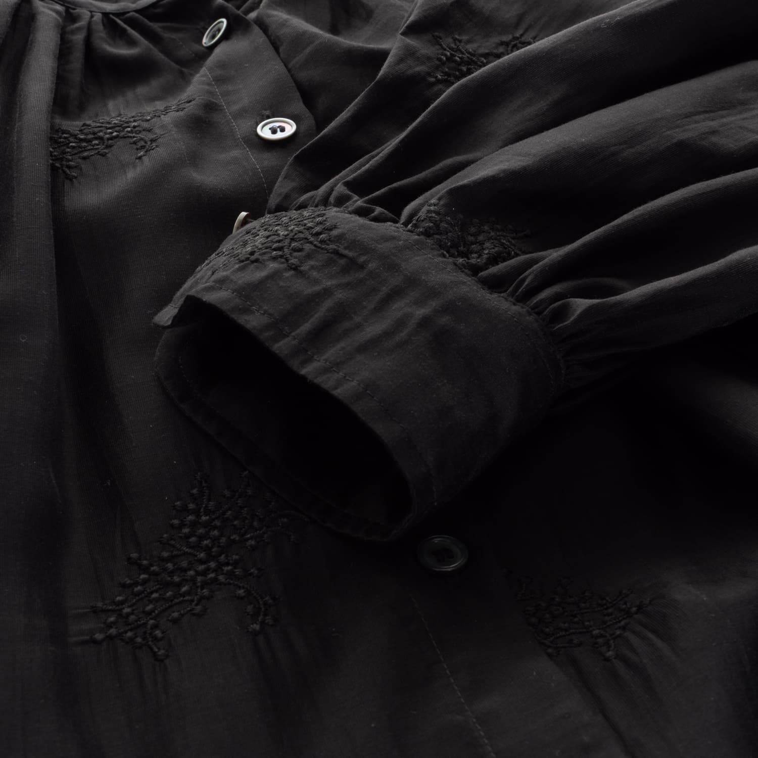 - Rundhalsausschnitt mit durchgehender Knopfleiste