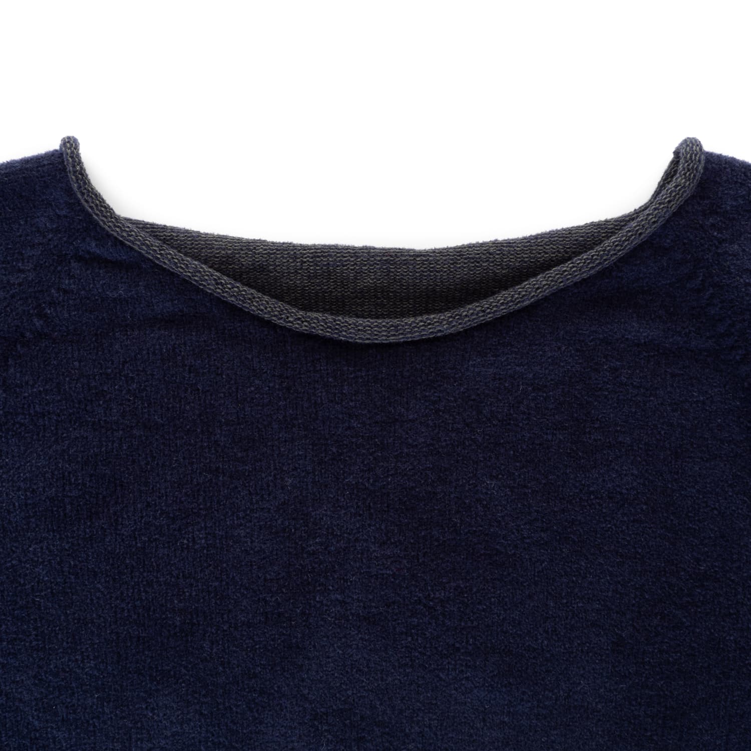 - Rundhalsausschnitt mit rolliertem Abschluss