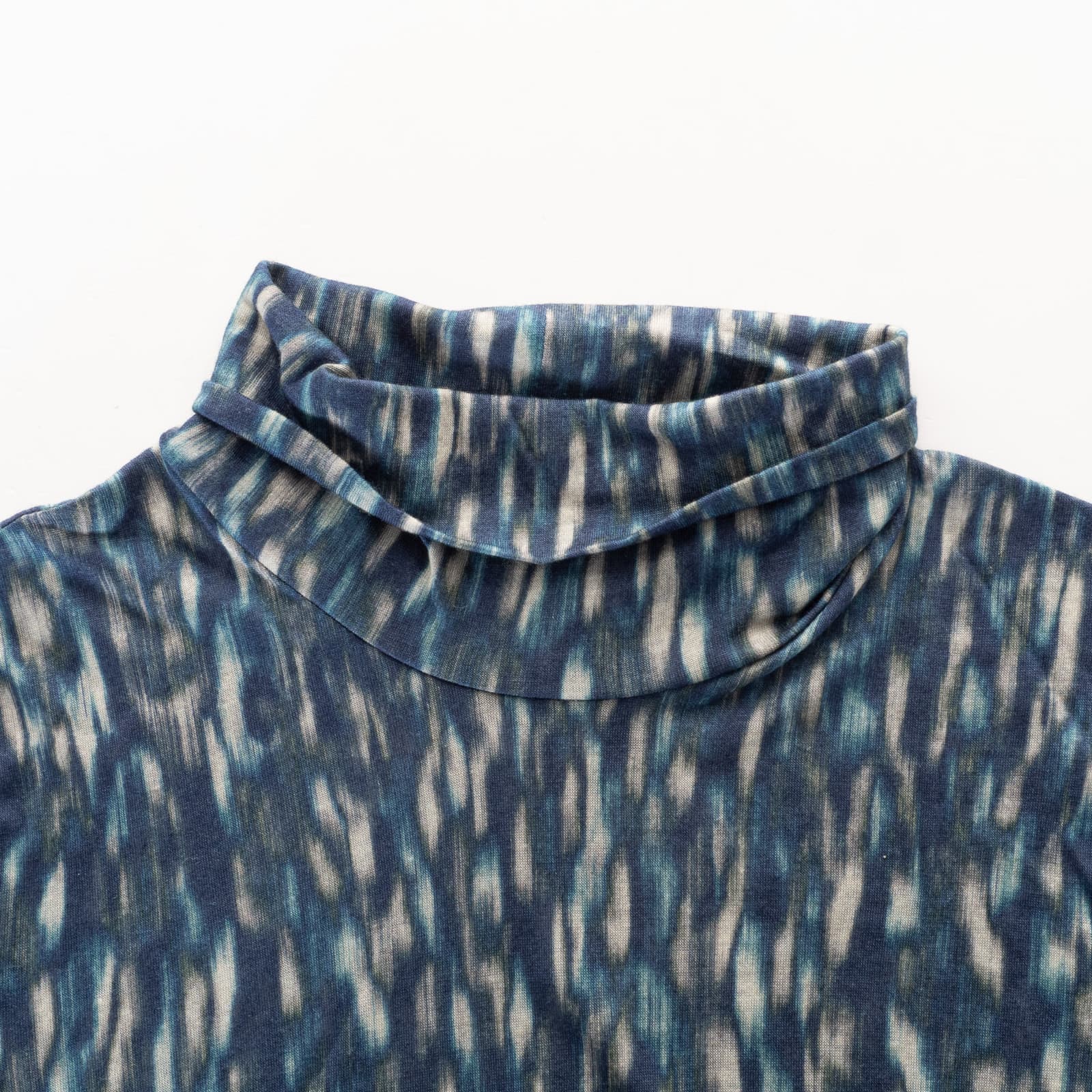 Leichtes Rollkragenshirt von Caliban aus einer feinen Modal-Woll-Mischung. Das Modell zeigt sich in zwei Varianten – mit blauem oder beigem Allover-Muster – und bietet durch das weiche, elastische Material einen angenehmen Tragekomfort. Der Rollkragen sorgt für eine elegante, schlanke Silhouette und macht die Bluse zu einem vielseitigen Begleiter, sowohl solo getragen als auch unter Blazern oder Strick.