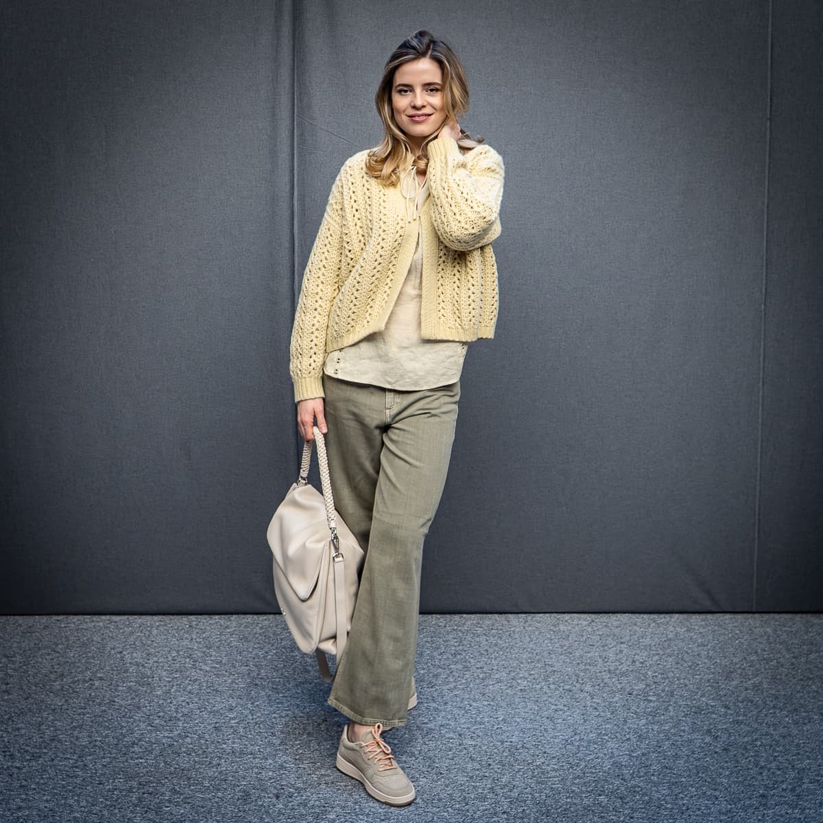Das Model ist 176 cm und trägt Größe 29=38.
