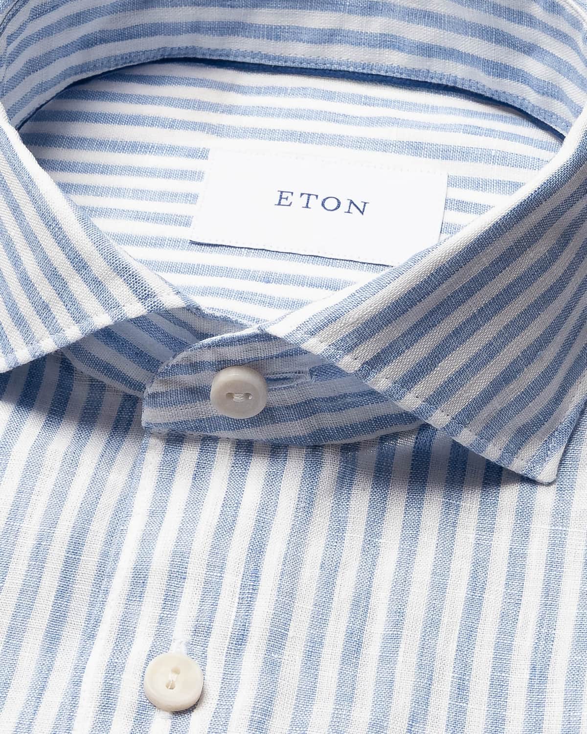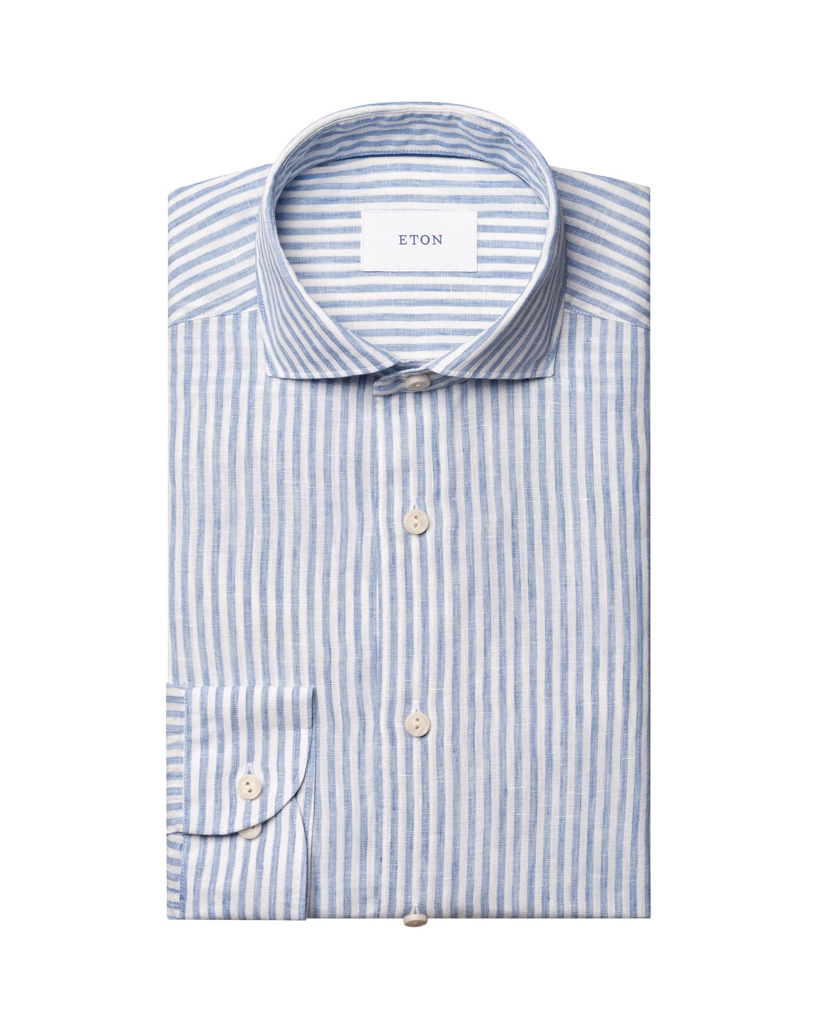 Dieses gestreifte Leinenhemd von Eton verbindet sommerliche Leichtigkeit mit klassischer Eleganz. Gefertigt aus 100 % hochwertigem Leinen, gewebt von der renommierten italienischen Weberei Albini, überzeugt der Stoff durch seine klare Bengalstreifen-Optik und eine angenehm natürliche Haptik. Leinen ist von Natur aus feuchtigkeitsableitend und temperaturregulierend – ideal für warme Tage. Durch die Stückwäsche erhält das Hemd zusätzliche Weichheit und einen entspannten, dennoch gepflegten Charakter.