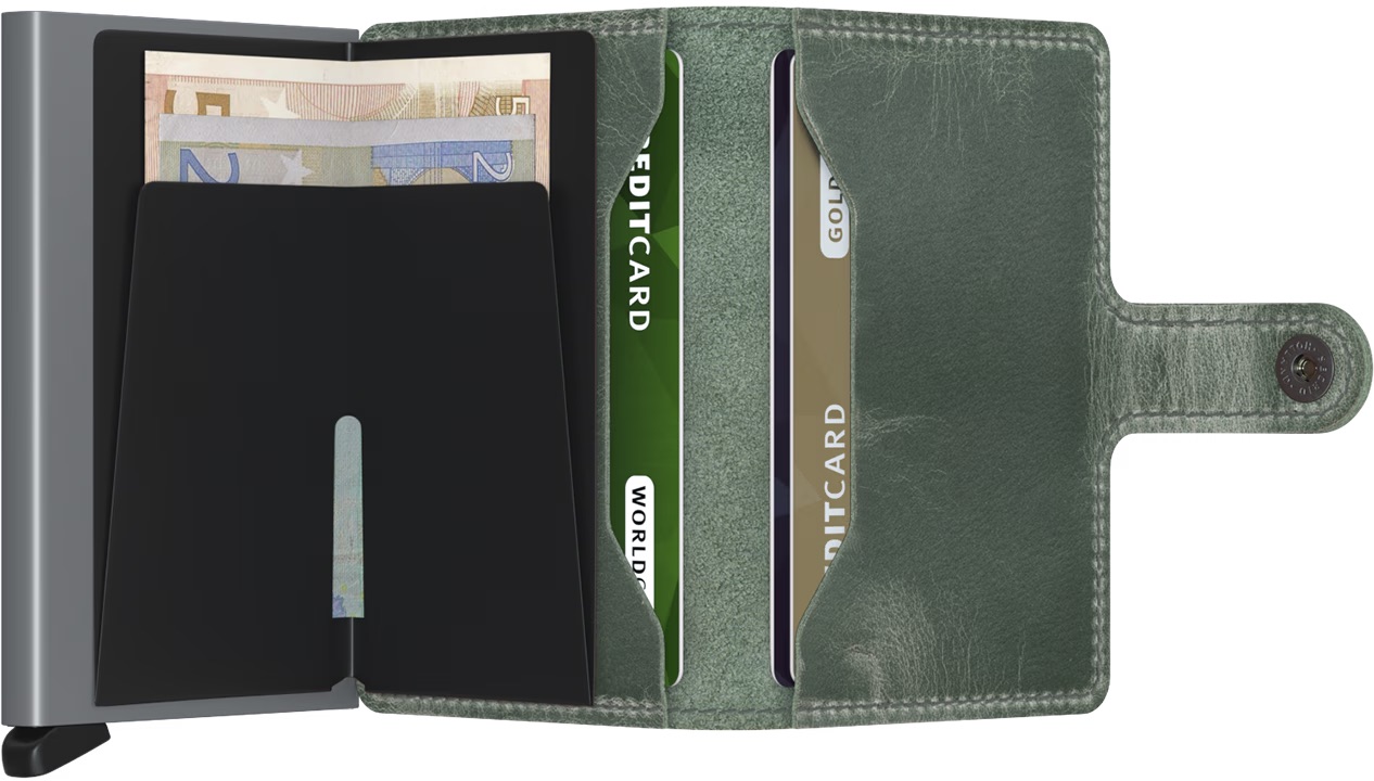 Secrid Miniwallet Vintage .Das Miniwallet ist kompakt in der Größe, bietet aber überraschend viel Platz. Es ist in einer Vielzahl von Stilen und Farben verfügbar und passt in jede Hosentasche. Der patentierte Mechanismus ermöglicht den Zugriff zu Ihren Karten mit einer einzigen Bewegung, so dass sie sofort einsatzbereit sind. Das Aluminium schützt vor Biegen, Brechen und unerwünschter Mobilkommunikation.