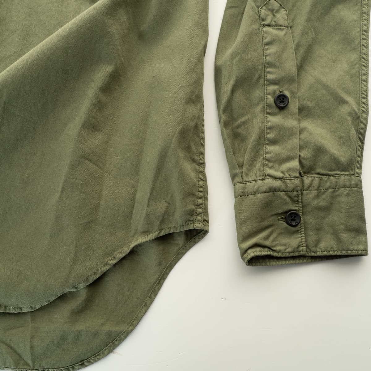 - Durchgehende Knopfleiste mit dunklen Knöpfen