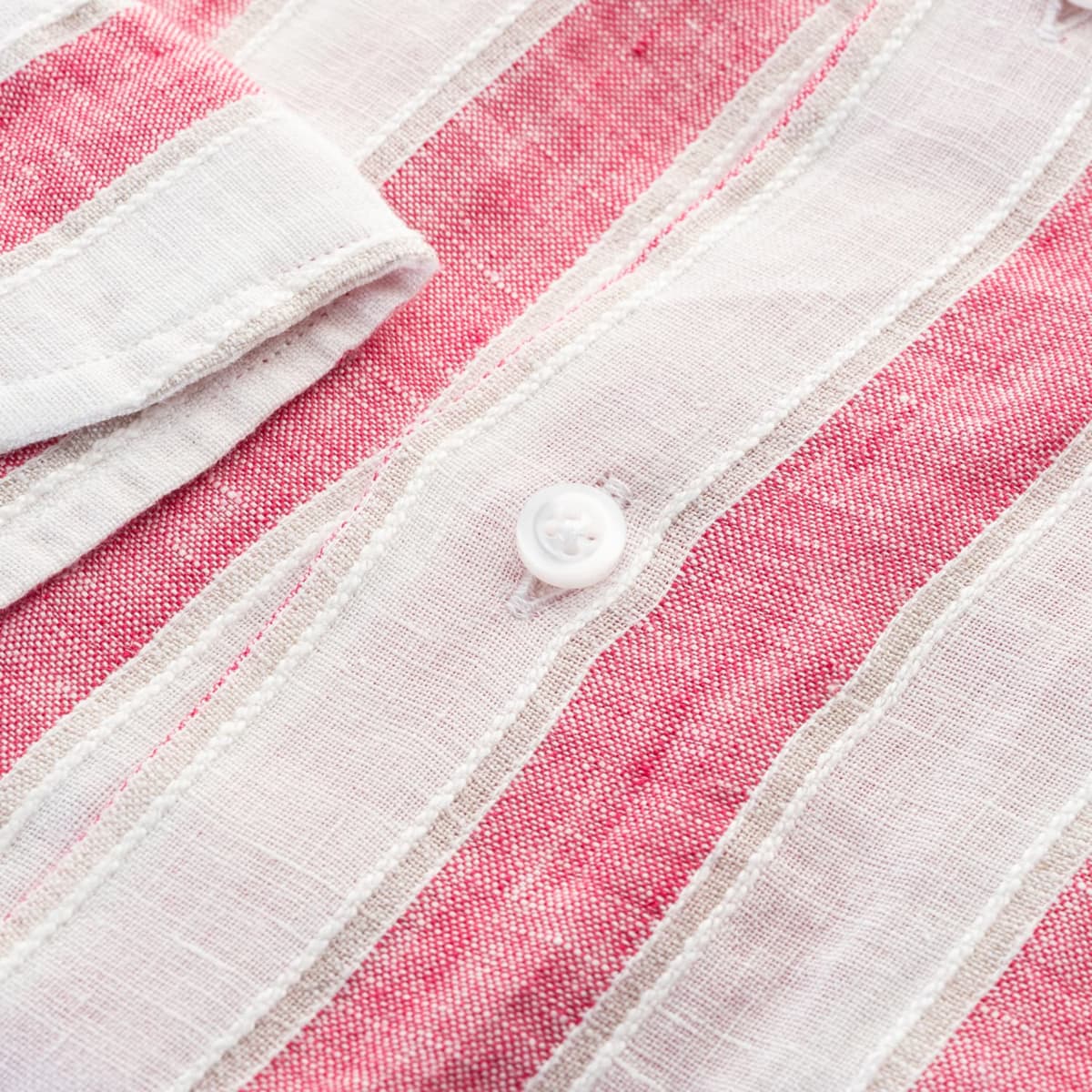 - Vertikales Streifenmuster in Pink/Natur mit lebendiger, leicht melierter Optik