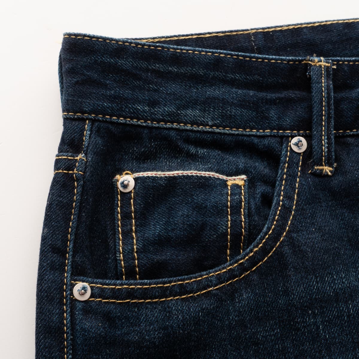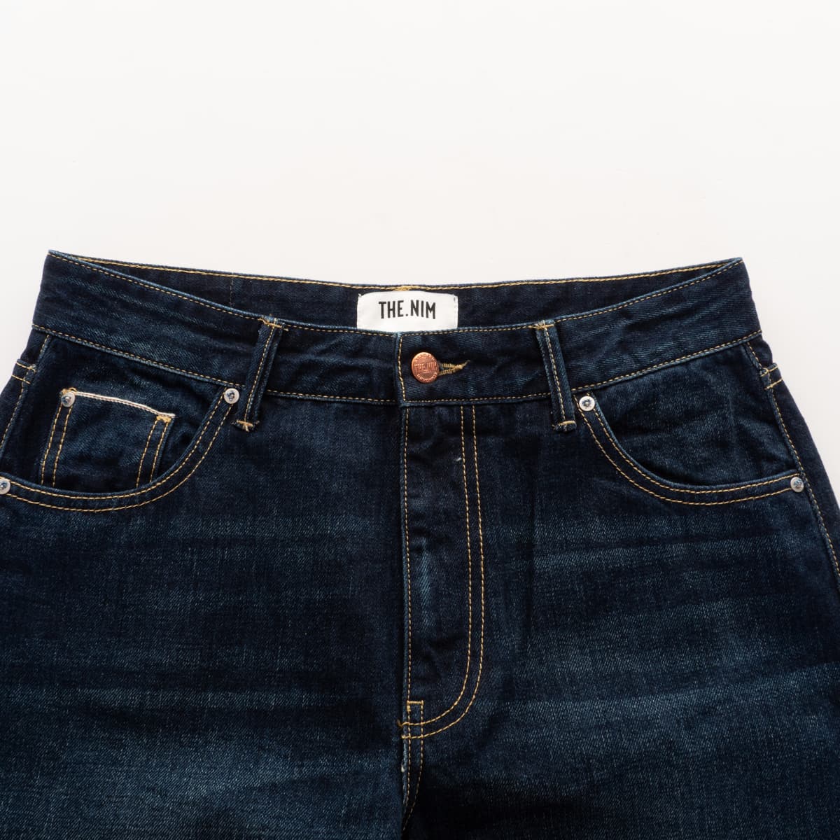 Die Andy Jeans von The.Nim Standard ist eine locker geschnittene Boyfriend Jeans mit authentischem Denim-Charakter. Der 12,5 oz schwere 3/1 Blue Denim wird auf traditionelle Weise verarbeitet und erhält durch das klare Stonewashed-Finish eine angenehm weiche Haptik und einen tragbaren Vintage-Look. Kupfernieten, Kontrastnähte und ein Lederpatch am hinteren Bund betonen den hochwertigen Stil. Der umgeschlagene Saum zeigt die rote Selvedge-Kante – ein stilvolles Detail, das den Anspruch unterstreicht. Die sichtbare Selvedge-Kante am umgeschlagenen Saum verweist auf die traditionelle Webtechnik und unterstreicht die hochwertige Verarbeitung.