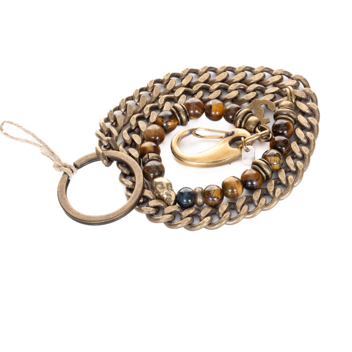 Die Wallet Chain "Old Skull" von XXL Hardwear ist ideal für Brieftaschen, Schlüssel oder schlicht als dekorative Anhänger. Alle Steine sind mineralischer und/oder keramischer Herkunft, mit ihren jeweils unterschiedlichen Eigenschaften und kombiniert mit gealtertem Messing. Aufgezogen auf einem doppelten Stahlseil - extrem reißfest.