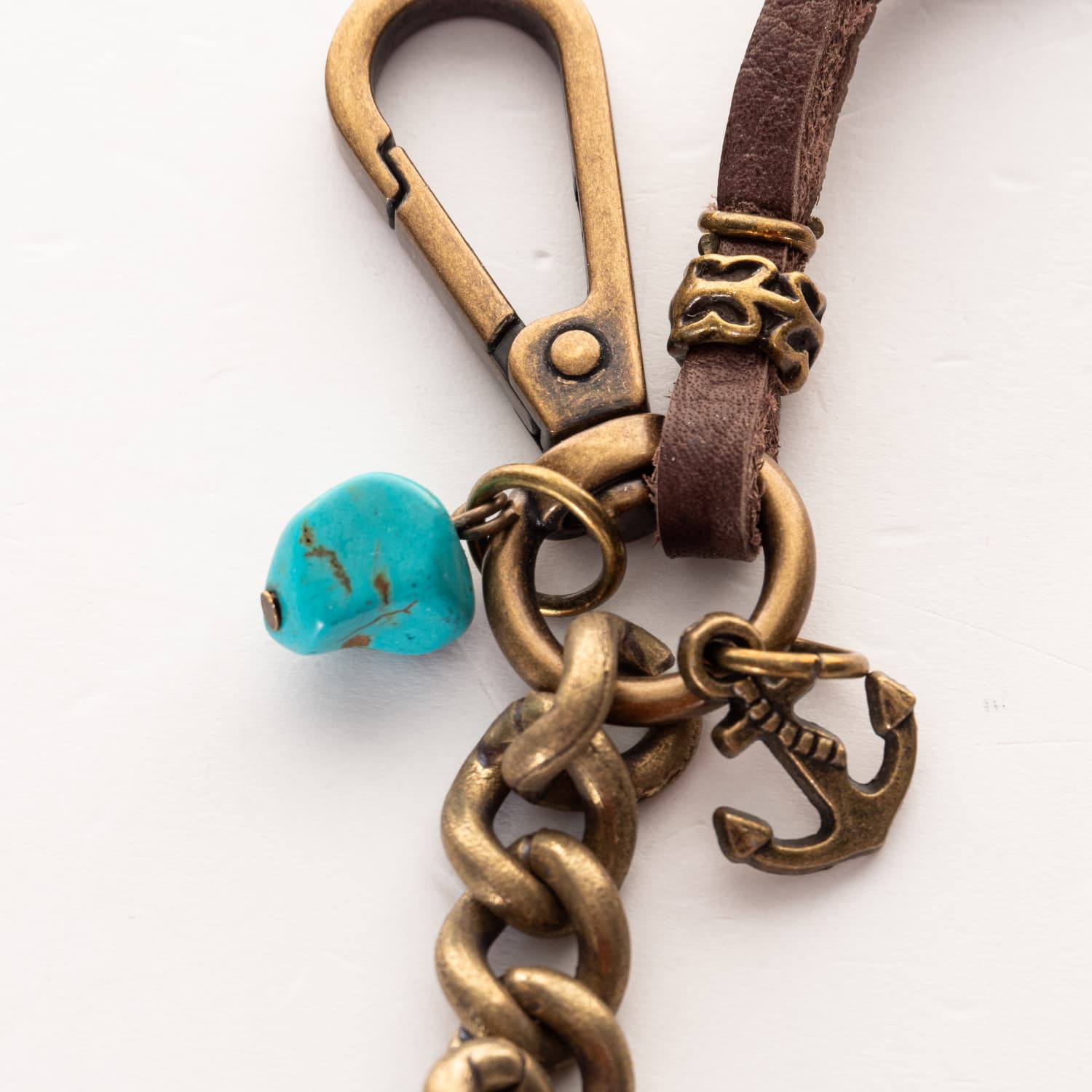 Die Schlüsselkette Desert von XXL Hardwear ist ein stilvolles Accessoire mit rauem Charme. Gefertigt aus massiven Messinggliedern und einem handpolierten blauen Howlith-Stein verbindet sie Funktionalität mit handwerklicher Ästhetik. Der stabile Schnappverschluss an einer Seite ermöglicht ein einfaches Befestigen an Gürtelschlaufen oder Taschen, während die markanten Anker-Details und der natürliche Steinakzent jedem Look eine individuelle Note verleihen. Jedes Stück ist handgefertigt – robust, charaktervoll und unisex tragbar.