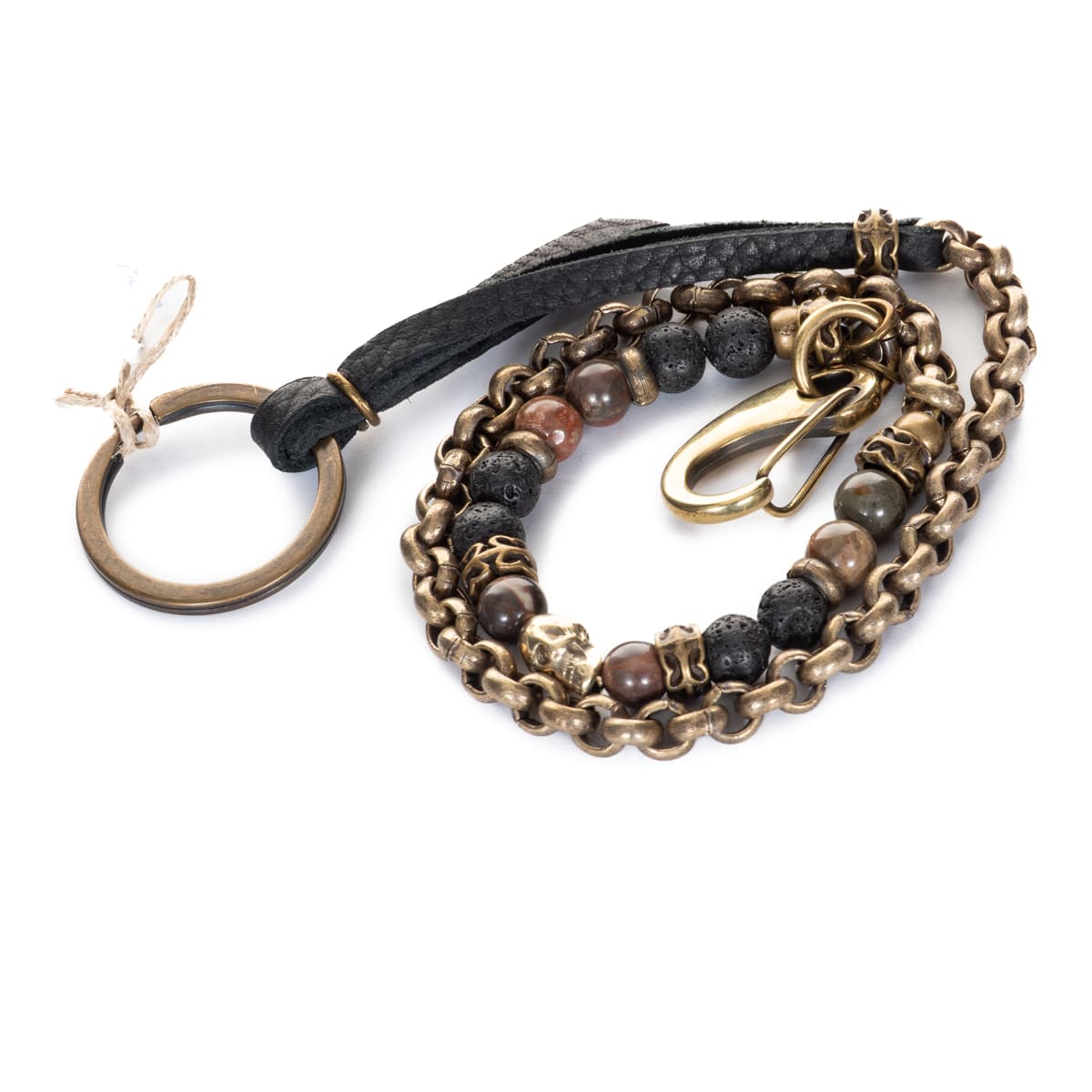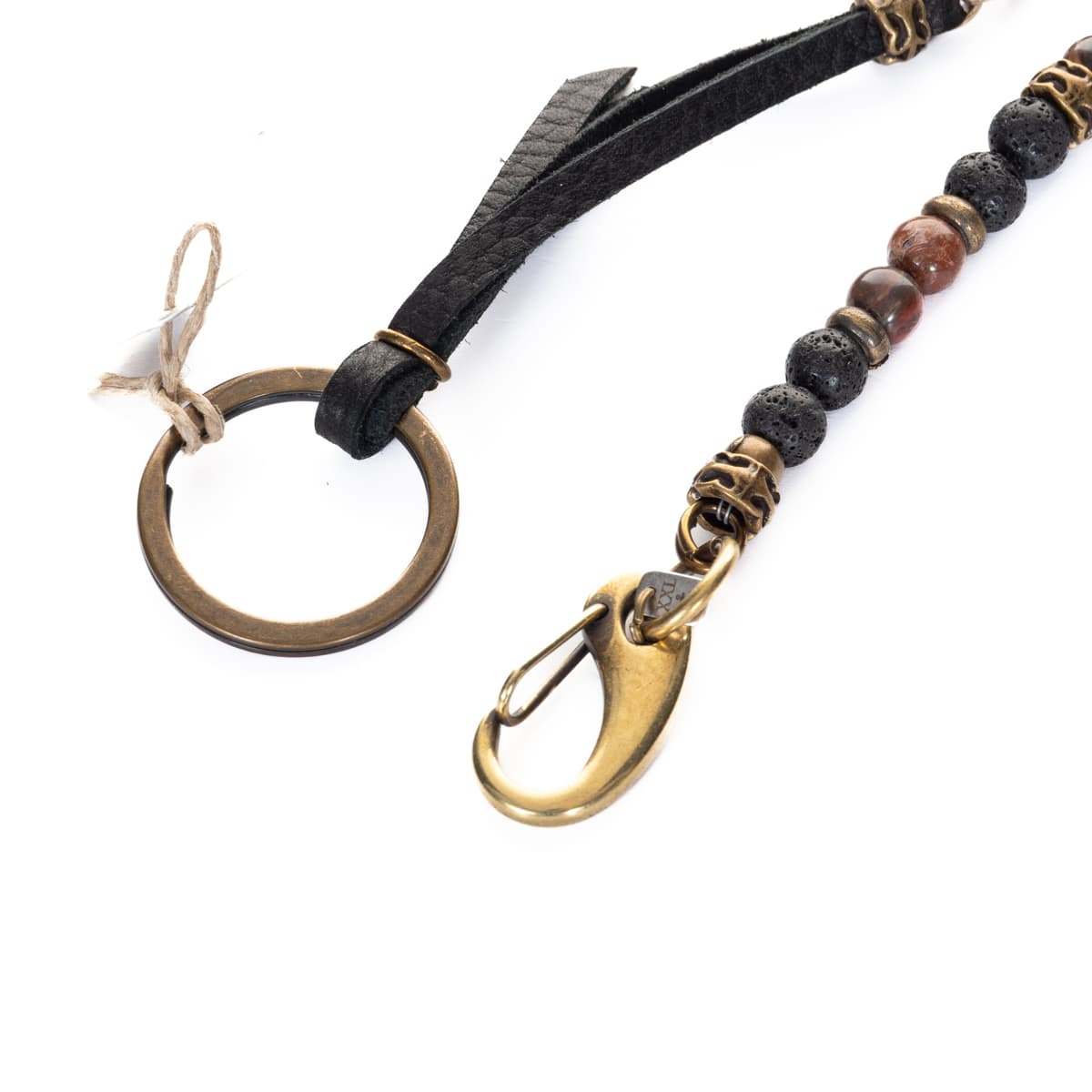 Die Wallet Chain "Pic" von XXL Hardwear ist ideal für Brieftaschen, Schlüssel oder als markantes Accessoire. Gefertigt aus Leder, Vulkanstein und Tigerauge, kombiniert mit gealtertem Messing für einen authentischen Look. Alle Steine sind mineralischen Ursprungs und einzigartig in ihrer Struktur. Aufgezogen auf einem doppelten Stahlseil – extrem reißfest und langlebig.