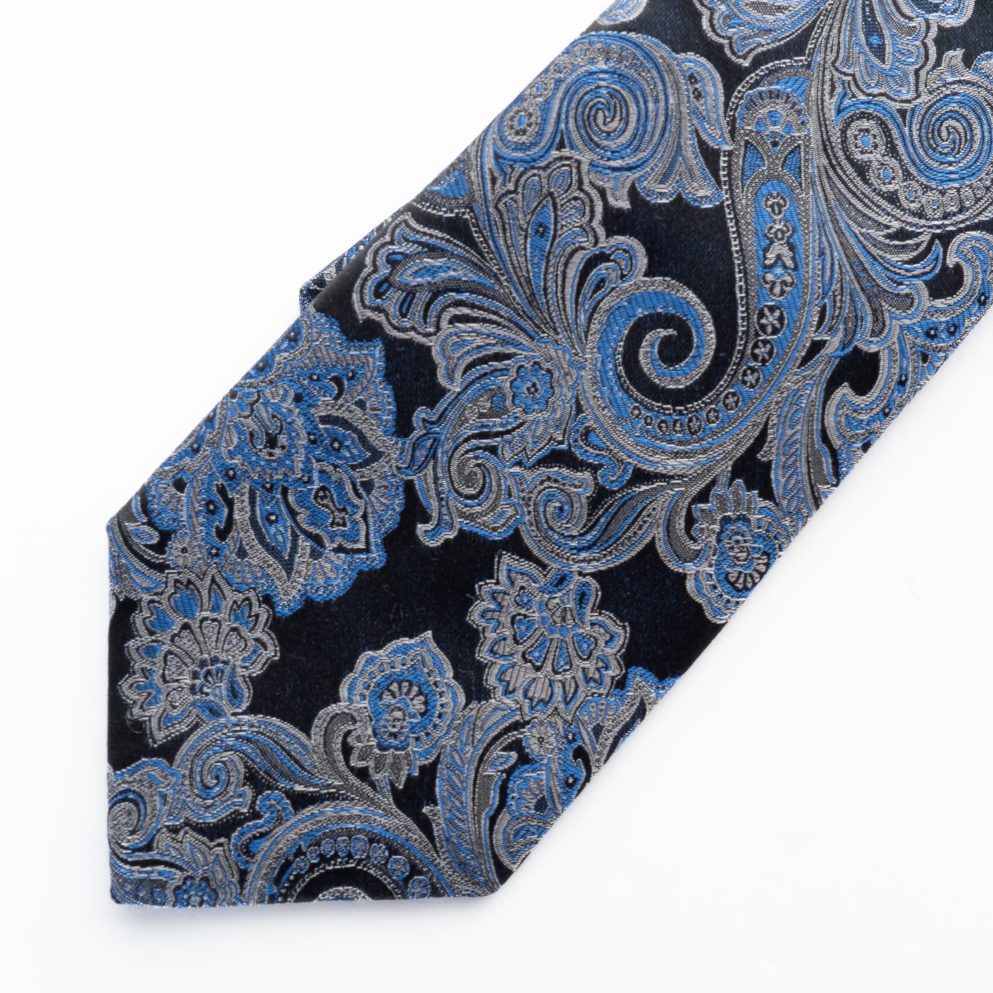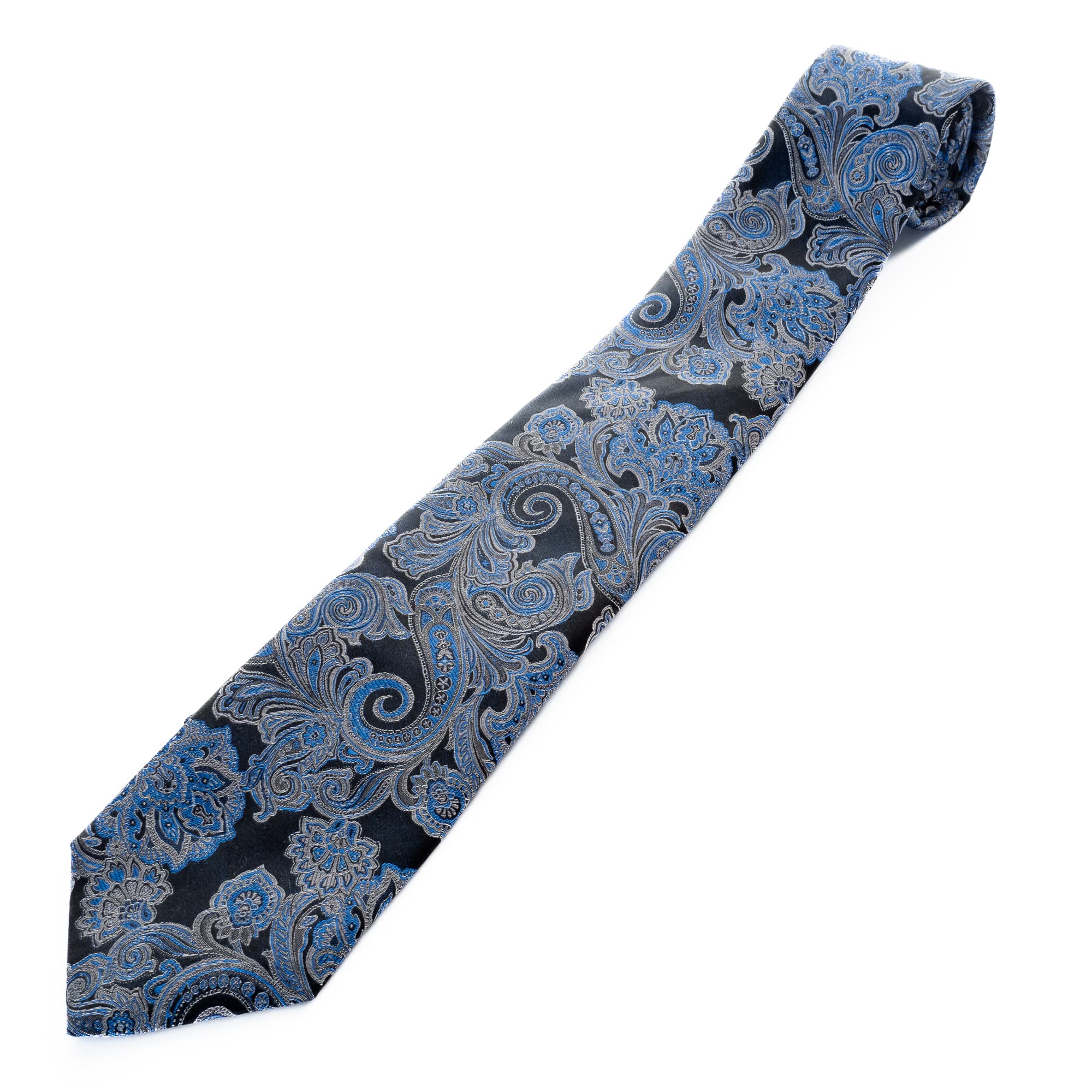 Diese exklusive Krawatte von Hemley begeistert mit einem kunstvollen Paisley-Muster in Blau- und Grautönen auf dunklem Grund. Sie ist nicht vorgebunden und besitzt ein eingenähtes Inlay, das für einen formstabilen Knoten sorgt. Ideal für stilvolle Auftritte – ob im Business oder zu besonderen Anlässen.