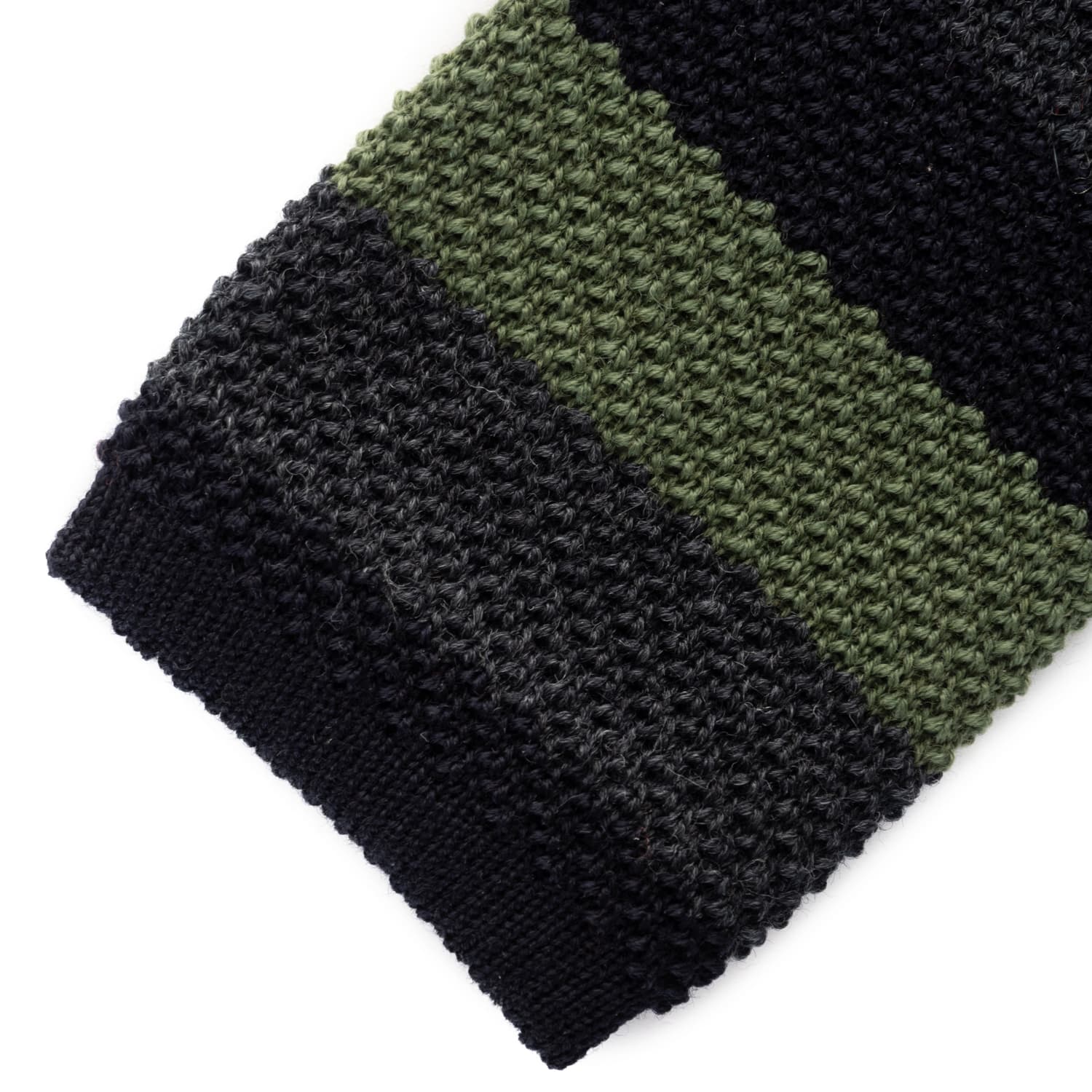 Hochwertige Strickkrawatte von Hemley aus reiner Wolle. Die plastische Strickstruktur verleiht der Krawatte eine lässige, zugleich stilvolle Optik und macht sie zu einem idealen Begleiter für entspannte Business-Looks oder moderne Kombinationen mit Sakko, Strick und Denim. Das geringelte Design in Grün und Blau unterstreicht den klassischen Charakter mit sportiver Note.