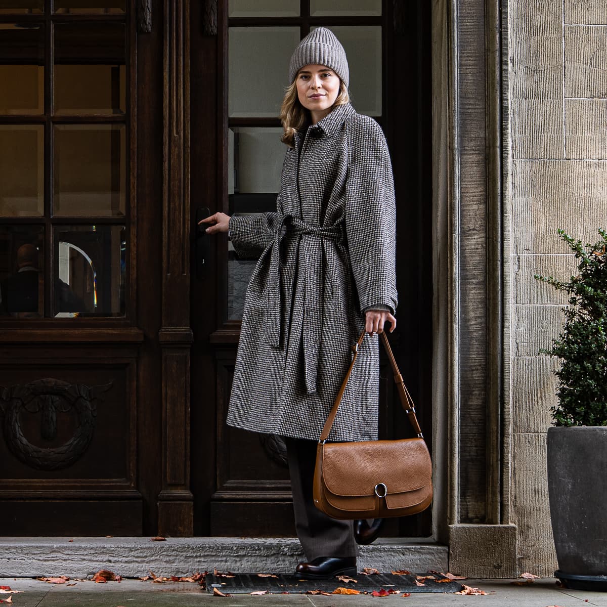 Der Vichy Mantel von Kiltie S:R:L: überzeugt mit einem stilvollen Hahnentritt-Muster in warmem Braun. Der klassische Einreiher mit verdeckten Knöpfen, Umlegekragen mit Knopf und Rückenschlitz sorgt für eine zeitlose Silhouette. Zwei praktische Eingriffstaschen und Knopfmanschetten runden den Look ab. Gefertigt in Italien aus einer hochwertigen Wollmischung – für stilvolle Auftritte an kühlen Tagen.
