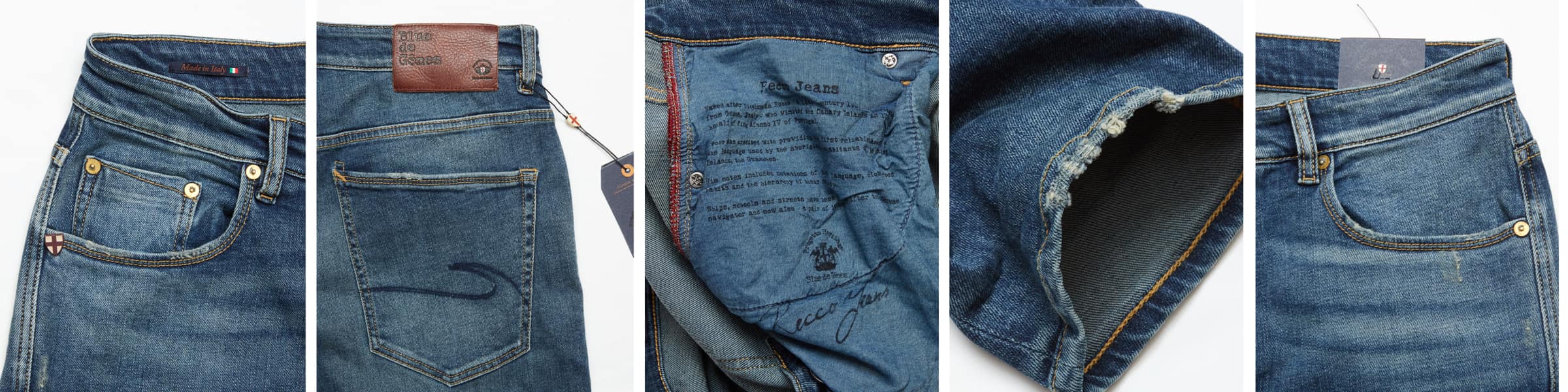 Die Recco Jeans vereint klassischen 5-Pocket-Stil mit einem modernen, schmal zulaufenden Schnitt. Der entspannte Regular Fit sorgt für hohen Tragekomfort während markante Details wie die wellenförmige Gesäßtaschen-Steppung, inspiriert von den Entdeckungen Nicoloso da Reccos, sowie Kontrastnähte an Knopfleiste und Münztasche den Look definieren. Gefertigt mit entspannterer Fußweite überzeugt sie durch langlebige Qualität und authentischen Charakter. Die verstärkten Gesäßtaschen und das in Italien gefertigte Design machen diese Jeans zu einem stilvollen Begleiter mit maritimer Geschichte.