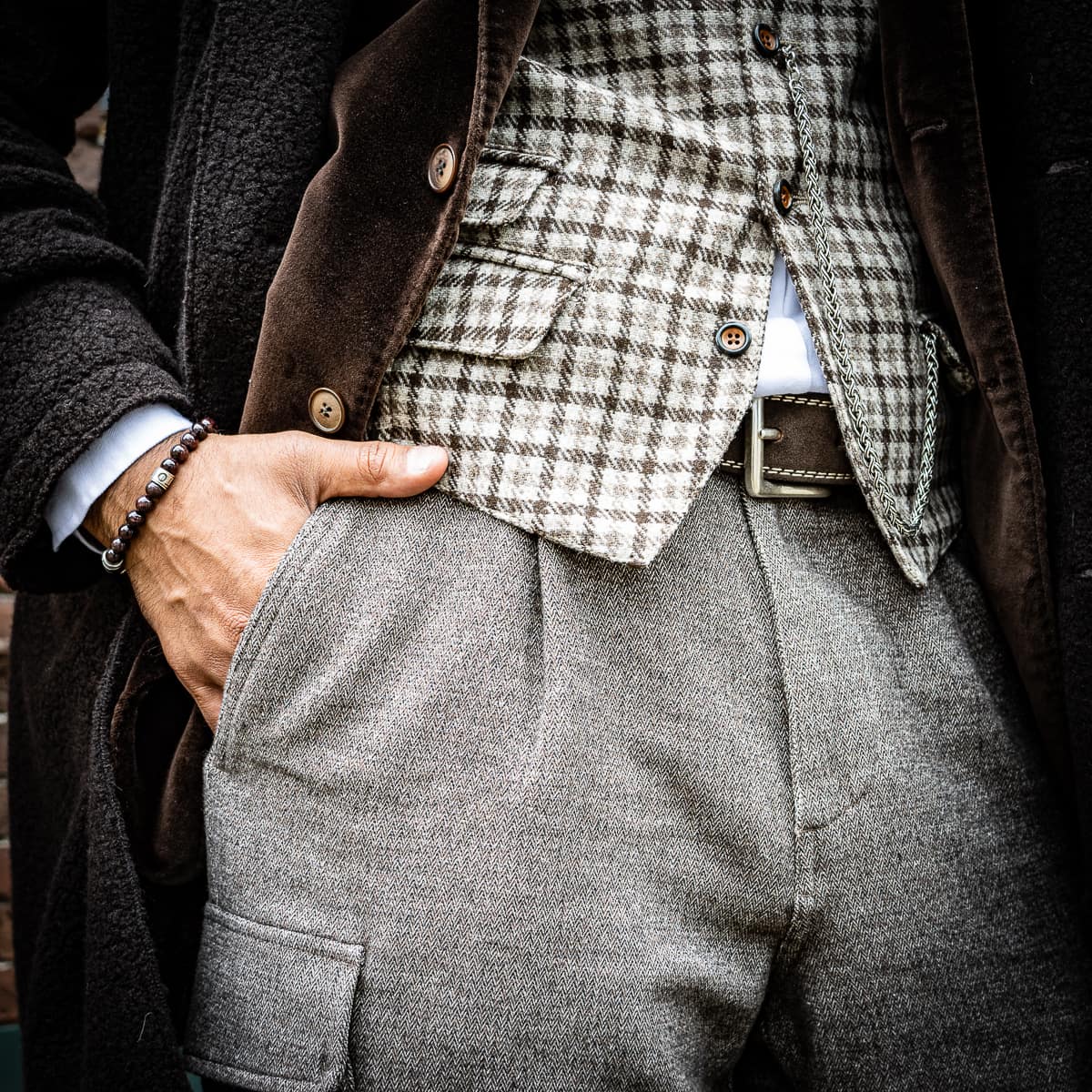 Dieses Sakko von 1973 ist ein Highlight in jeder Wintergarderobe. Das weiche Samt-Gewebe wurde aus einer Baumwollmischung gefertigt und besitzt eine unglaublich weiche Haptik. Der sportlich, taillierte Schnitt in Kombination mit dem fallenden Reverse sorgen für einen gelungenen Auftritt zu jeder Gelegenheit. Auf der Außenseite befinden sich 3 Pattentaschen und auf der Innenseite 4 Innentaschen. Geschlossen wird das Sakko mit einem klassischen 2-Knopf-Verschluss. Abgerundet wird das Design mit den Kissing-Buttons, die sich an den Ärmeln finden lassen.