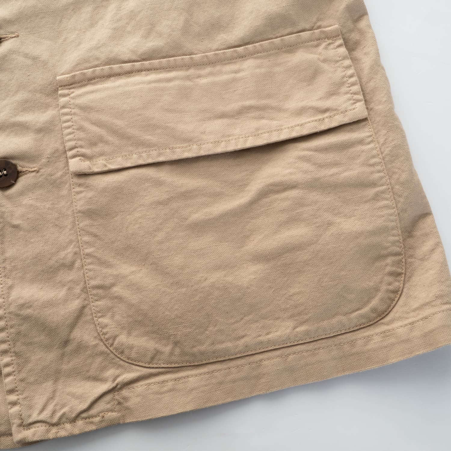 - Dicht gewebte Stoffstruktur mit natürlichem Griff