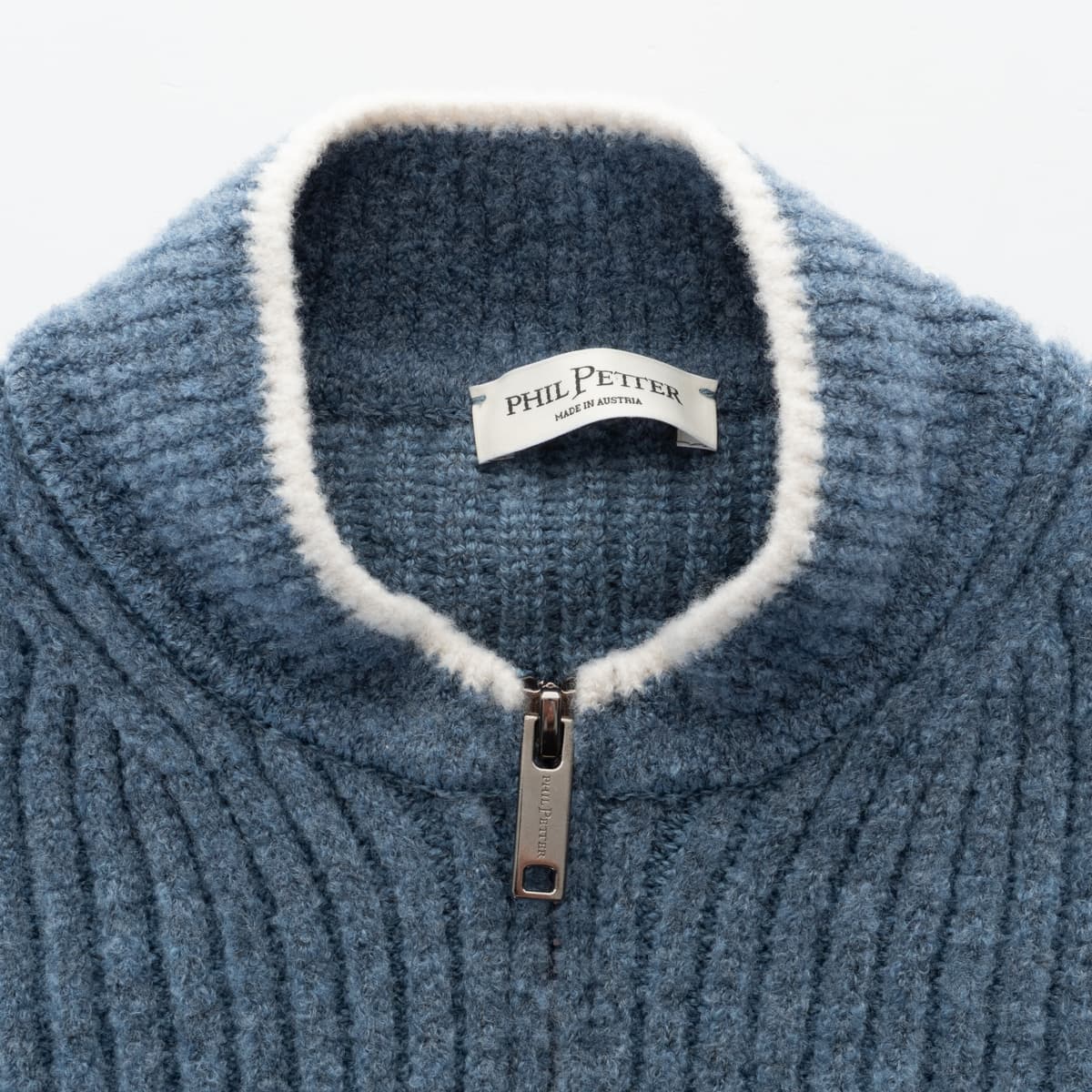 „Wir stellen nichts her, was uns nicht restlos begeistert“, das ist der Anspruch, mit dem bei Phil Petter, permanent nach neuen Herausforderungen und innovativen Ideen gesucht wird – und das alles, um den modebewussten Mann besser aussehen zu lassen. Mit viel Herzblut und Liebe zum Detail entstehen einzigartige Pullover aus extrafeiner Merinowolle mit maximalem Wohlfühlfaktor, hochwertige Walkteile in Vintage-Optik mit Farbverlauf, sportiver Strick mit mattem, technischem Nylonstepp und edle Strickjacken mit luxuriösem Lammfell. Eine Bandbreite, die dem Anspruch des qualitätsbewussten, modernen Mannes mehr als gerecht wird. In der familieneigenen Manufaktur in Dornbirn, Österreich, wird vom ersten Faden an selbst produziert, vorgefertigte Stoffe sucht man vergebens. Am Anfang stehen die äußerst sorgfältig ausgewählten feinsten italienischen Garne und selbst Zubehör wie Bänder werden in Dornbirn gestrickt um die perfekte Farbzusammenstellung gewährleisten zu können. Um auch bei Knöpfen, Reißverschlüssen und Leder die Qualität „in Sichtweite“ zu haben, kommen diese aus der direkten Umgebung, von Manufakturen und Handwerks- betrieben aus Italien, Deutschland und Österreich. Und der hochsensible Vor- gang des Färbens wird nur den renommiertesten Färbereien des Luxussegments in Italien anvertraut, die Petters gehen auch hier keine Kompromisse ein. Das Ergebnis aus 40 Jahren Erfahrung und Know-how von Familie Petter und Ihren Mitarbeitern in traditioneller und moderner Handwerkskunst, ist eine hochwertige Strickmode, die sich durch eine außergewöhnliche Langlebigkeit und Formstabilität auszeichnet. Die perfekte Kombination von Look und Feel sind die herausragenden Merkmale dieser Manufakturprodukte. Mit dem Mut zur Authentizität hat Phil Petter die aktuellen Kollektionen kreiert die zeitgemäß, innovativ und komfortabel sind, getreu dem Motto: „Tradition gepaart mit Neugier auf Neues“