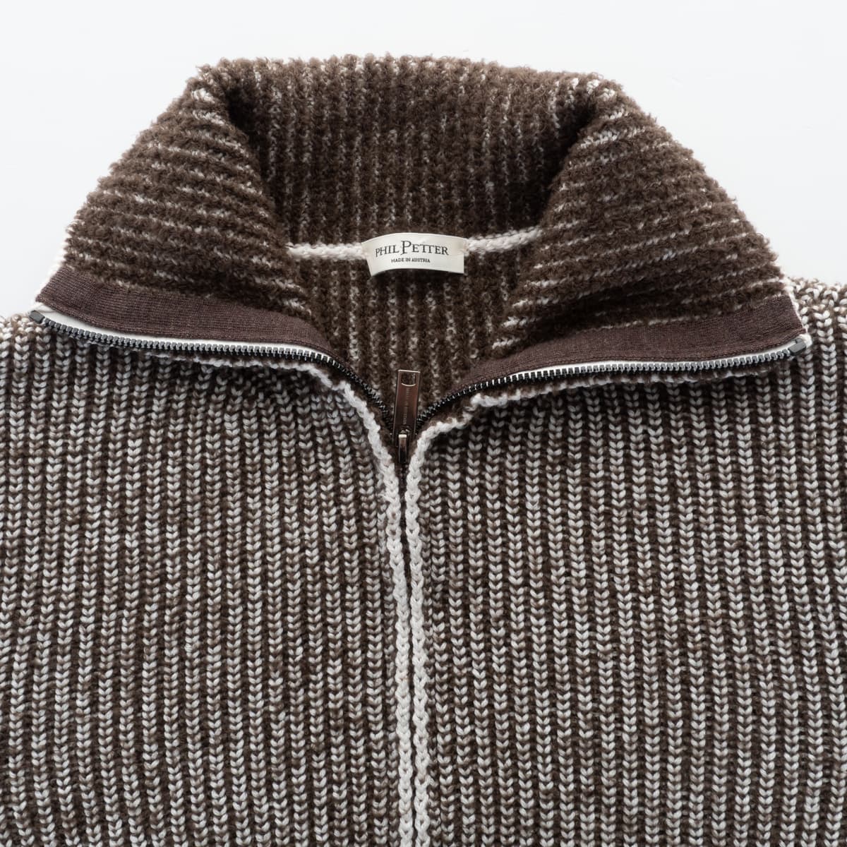 „Wir stellen nichts her, was uns nicht restlos begeistert“, das ist der Anspruch, mit dem bei Phil Petter, permanent nach neuen Herausforderungen und innovativen Ideen gesucht wird – und das alles, um den modebewussten Mann besser aussehen zu lassen. Mit viel Herzblut und Liebe zum Detail entstehen einzigartige Pullover aus extrafeiner Merinowolle mit maximalem Wohlfühlfaktor, hochwertige Walkteile in Vintage-Optik mit Farbverlauf, sportiver Strick mit mattem, technischem Nylonstepp und edle Strickjacken mit luxuriösem Lammfell. Eine Bandbreite, die dem Anspruch des qualitätsbewussten, modernen Mannes mehr als gerecht wird. In der familieneigenen Manufaktur in Dornbirn, Österreich, wird vom ersten Faden an selbst produziert, vorgefertigte Stoffe sucht man vergebens. Am Anfang stehen die äußerst sorgfältig ausgewählten feinsten italienischen Garne und selbst Zubehör wie Bänder werden in Dornbirn gestrickt um die perfekte Farbzusammenstellung gewährleisten zu können. Um auch bei Knöpfen, Reißverschlüssen und Leder die Qualität „in Sichtweite“ zu haben, kommen diese aus der direkten Umgebung, von Manufakturen und Handwerks- betrieben aus Italien, Deutschland und Österreich. Und der hochsensible Vor- gang des Färbens wird nur den renommiertesten Färbereien des Luxussegments in Italien anvertraut, die Petters gehen auch hier keine Kompromisse ein. Das Ergebnis aus 40 Jahren Erfahrung und Know-how von Familie Petter und Ihren Mitarbeitern in traditioneller und moderner Handwerkskunst, ist eine hochwertige Strickmode, die sich durch eine außergewöhnliche Langlebigkeit und Formstabilität auszeichnet. Die perfekte Kombination von Look und Feel sind die herausragenden Merkmale dieser Manufakturprodukte. Mit dem Mut zur Authentizität hat Phil Petter die aktuellen Kollektionen kreiert die zeitgemäß, innovativ und komfortabel sind, getreu dem Motto: „Tradition gepaart mit Neugier auf Neues“