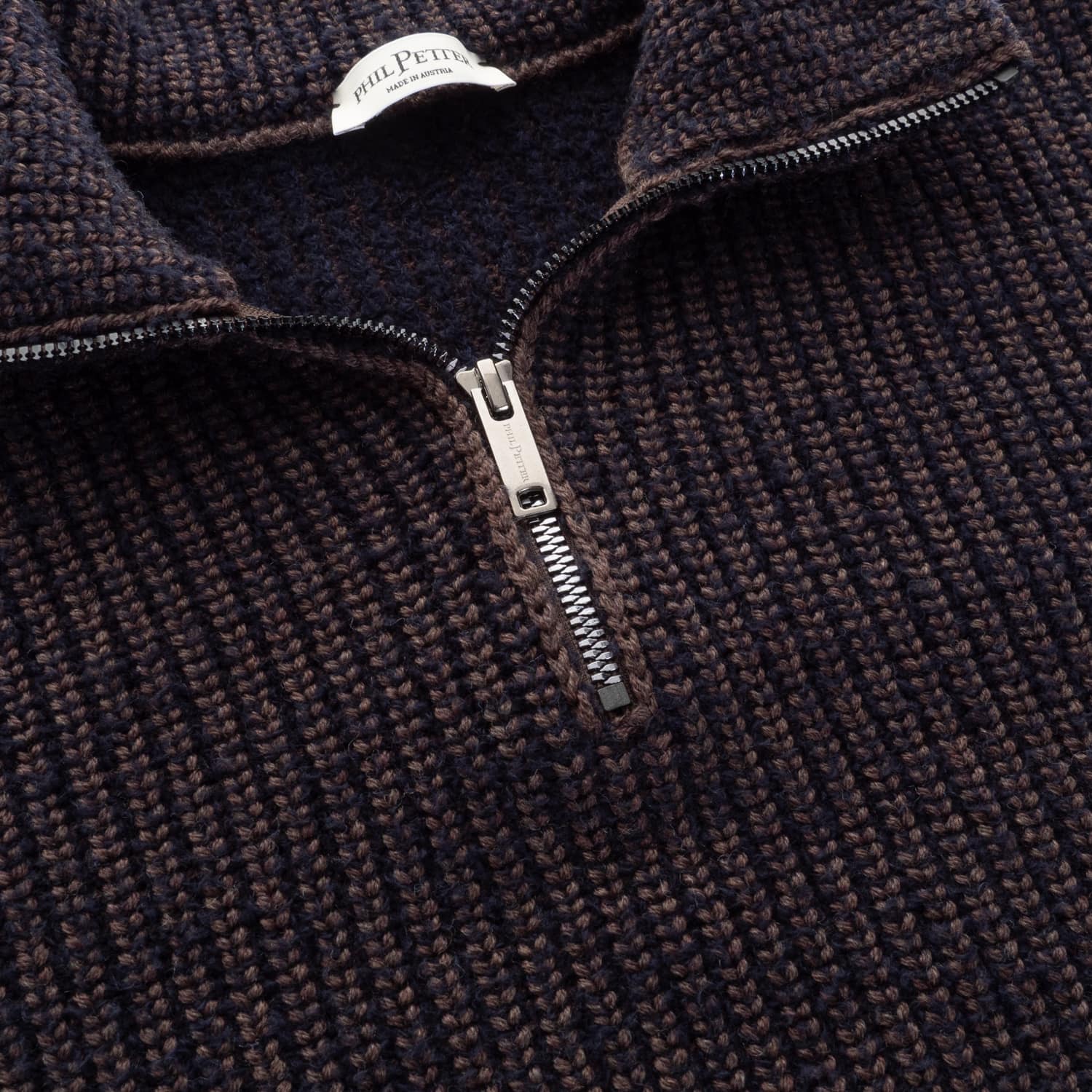 „Wir stellen nichts her, was uns nicht restlos begeistert“, das ist der Anspruch, mit dem bei Phil Petter, permanent nach neuen Herausforderungen und innovativen Ideen gesucht wird – und das alles, um den modebewussten Mann besser aussehen zu lassen. Mit viel Herzblut und Liebe zum Detail entstehen einzigartige Pullover aus extrafeiner Merinowolle mit maximalem Wohlfühlfaktor, hochwertige Walkteile in Vintage-Optik mit Farbverlauf, sportiver Strick mit mattem, technischem Nylonstepp und edle Strickjacken mit luxuriösem Lammfell. Eine Bandbreite, die dem Anspruch des qualitätsbewussten, modernen Mannes mehr als gerecht wird. In der familieneigenen Manufaktur in Dornbirn, Österreich, wird vom ersten Faden an selbst produziert, vorgefertigte Stoffe sucht man vergebens. Am Anfang stehen die äußerst sorgfältig ausgewählten feinsten italienischen Garne und selbst Zubehör wie Bänder werden in Dornbirn gestrickt um die perfekte Farbzusammenstellung gewährleisten zu können. Um auch bei Knöpfen, Reißverschlüssen und Leder die Qualität „in Sichtweite“ zu haben, kommen diese aus der direkten Umgebung, von Manufakturen und Handwerks- betrieben aus Italien, Deutschland und Österreich. Und der hochsensible Vor- gang des Färbens wird nur den renommiertesten Färbereien des Luxussegments in Italien anvertraut, die Petters gehen auch hier keine Kompromisse ein. Das Ergebnis aus 40 Jahren Erfahrung und Know-how von Familie Petter und Ihren Mitarbeitern in traditioneller und moderner Handwerkskunst, ist eine hochwertige Strickmode, die sich durch eine außergewöhnliche Langlebigkeit und Formstabilität auszeichnet. Die perfekte Kombination von Look und Feel sind die herausragenden Merkmale dieser Manufakturprodukte. Mit dem Mut zur Authentizität hat Phil Petter die aktuellen Kollektionen kreiert die zeitgemäß, innovativ und komfortabel sind, getreu dem Motto: „Tradition gepaart mit Neugier auf Neues“