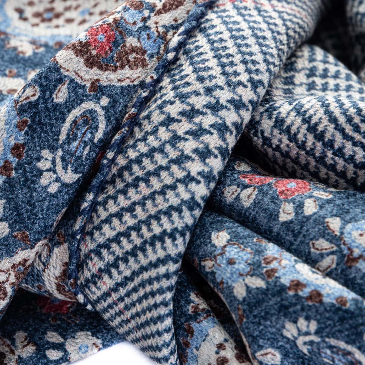 Eleganter Hemley Schal aus reiner Seide mit farbenfrohem Paisley-Muster in Blau, Rot und Hellgrün. Die Innenseite ist mit einem feinen Karomuster abgesetzt und verleiht dem Design zusätzliche Tiefe. Ein stilvolles Accessoire mit leichtem Glanz und luxuriöser Haptik.