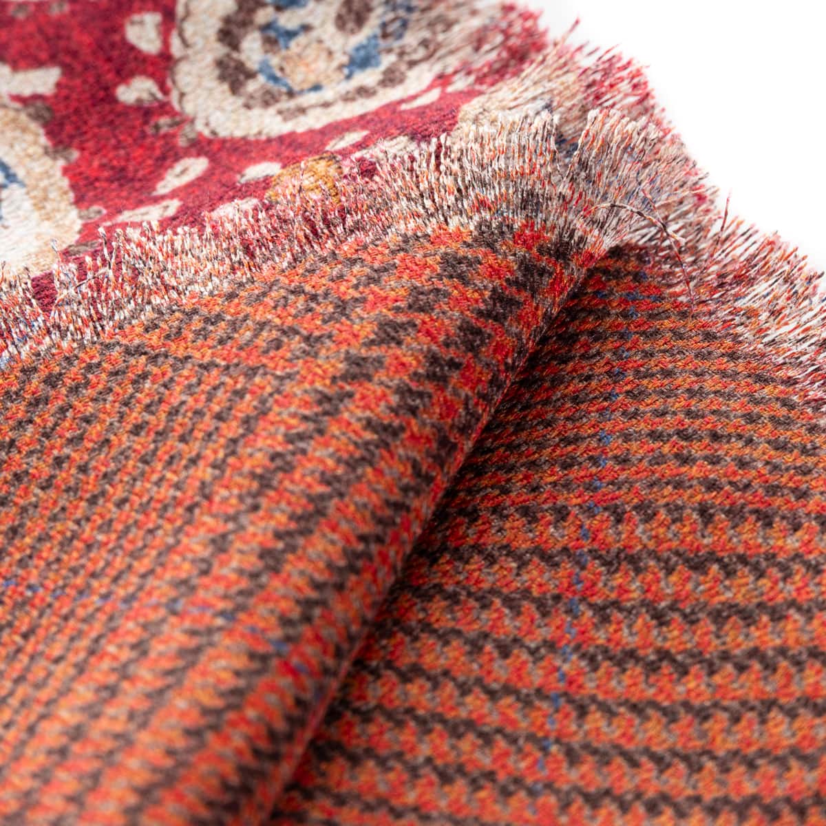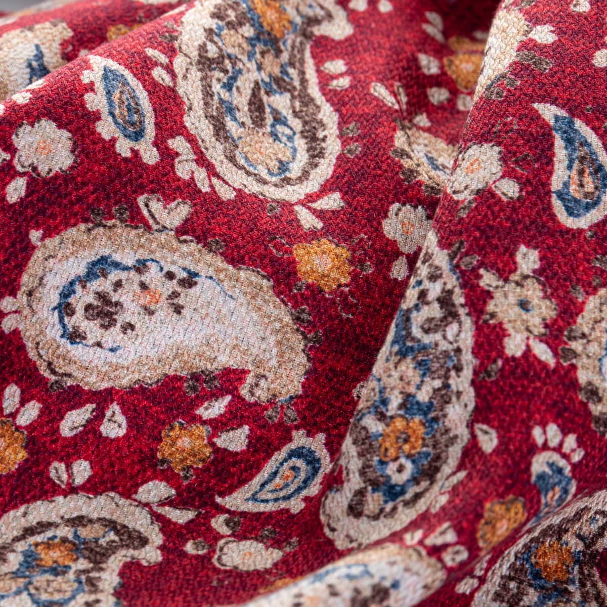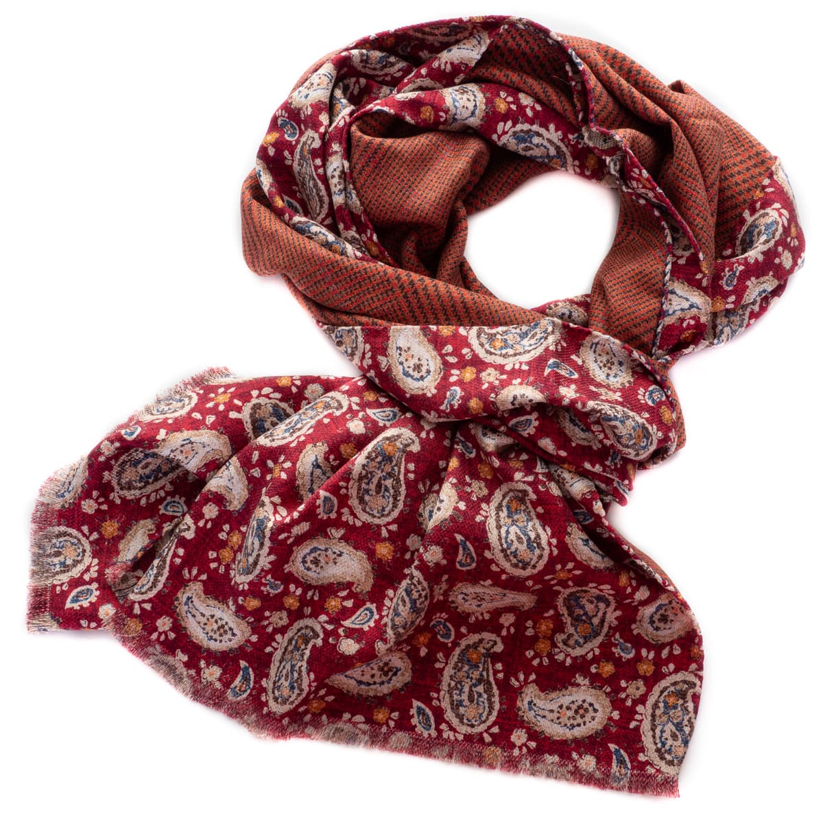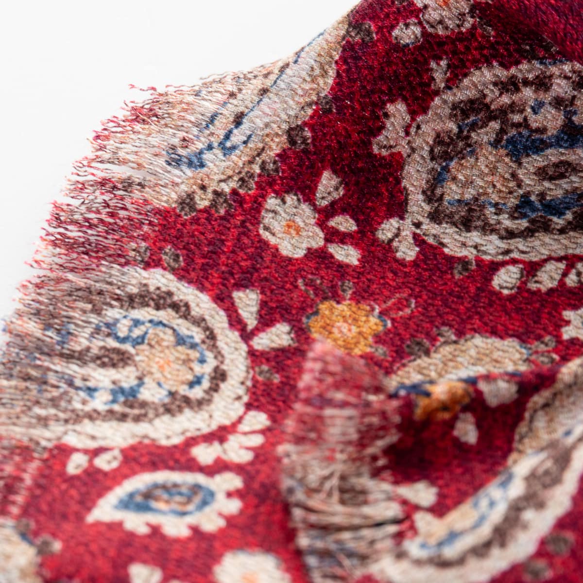 Eleganter Hemley Schal aus reiner Seide mit farbenfrohem Paisley-Muster in Blau, Rot und Hellgrün. Die Innenseite ist mit einem feinen Karomuster abgesetzt und verleiht dem Design zusätzliche Tiefe. Ein stilvolles Accessoire mit leichtem Glanz und luxuriöser Haptik.