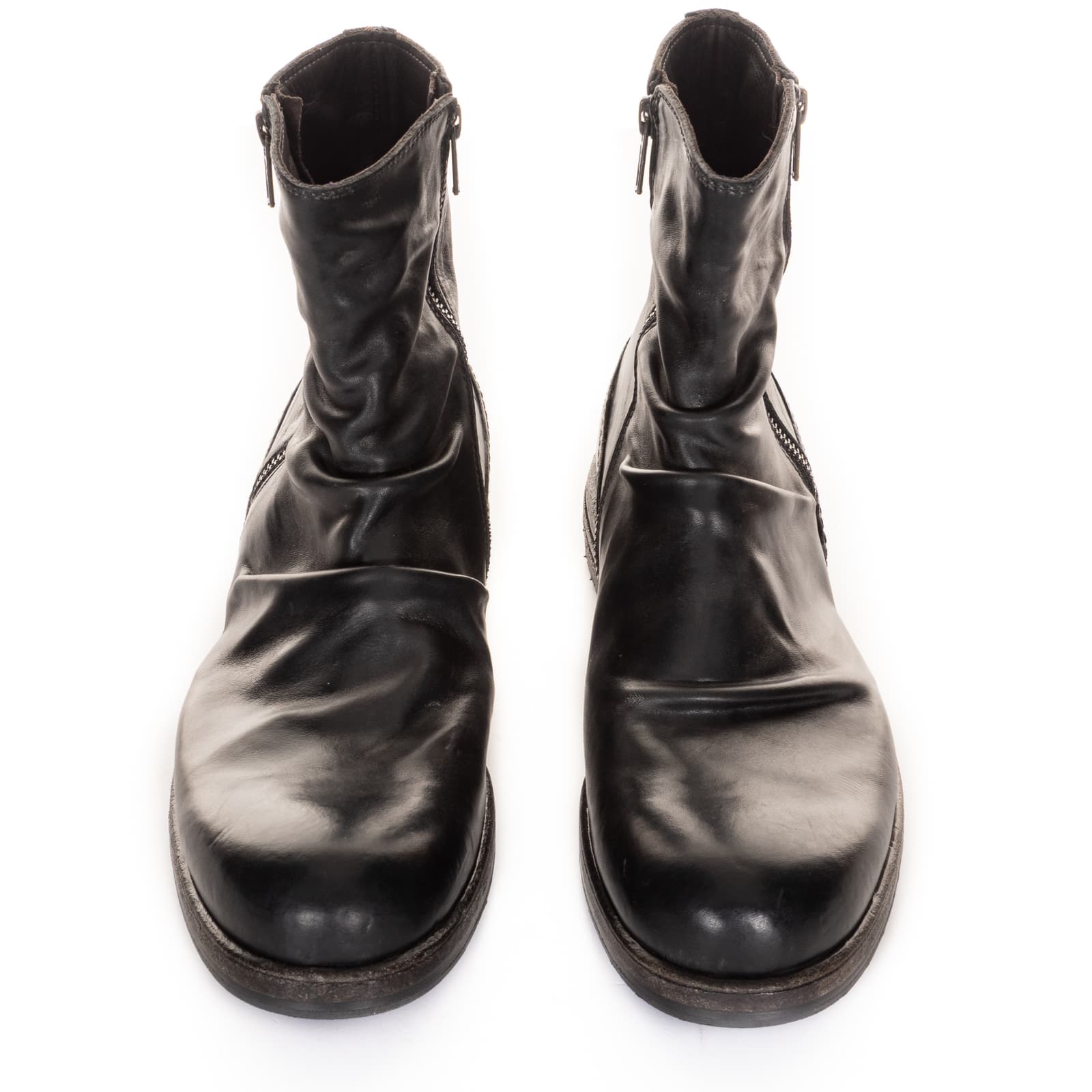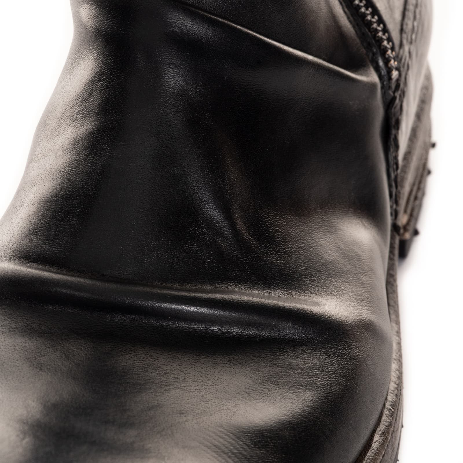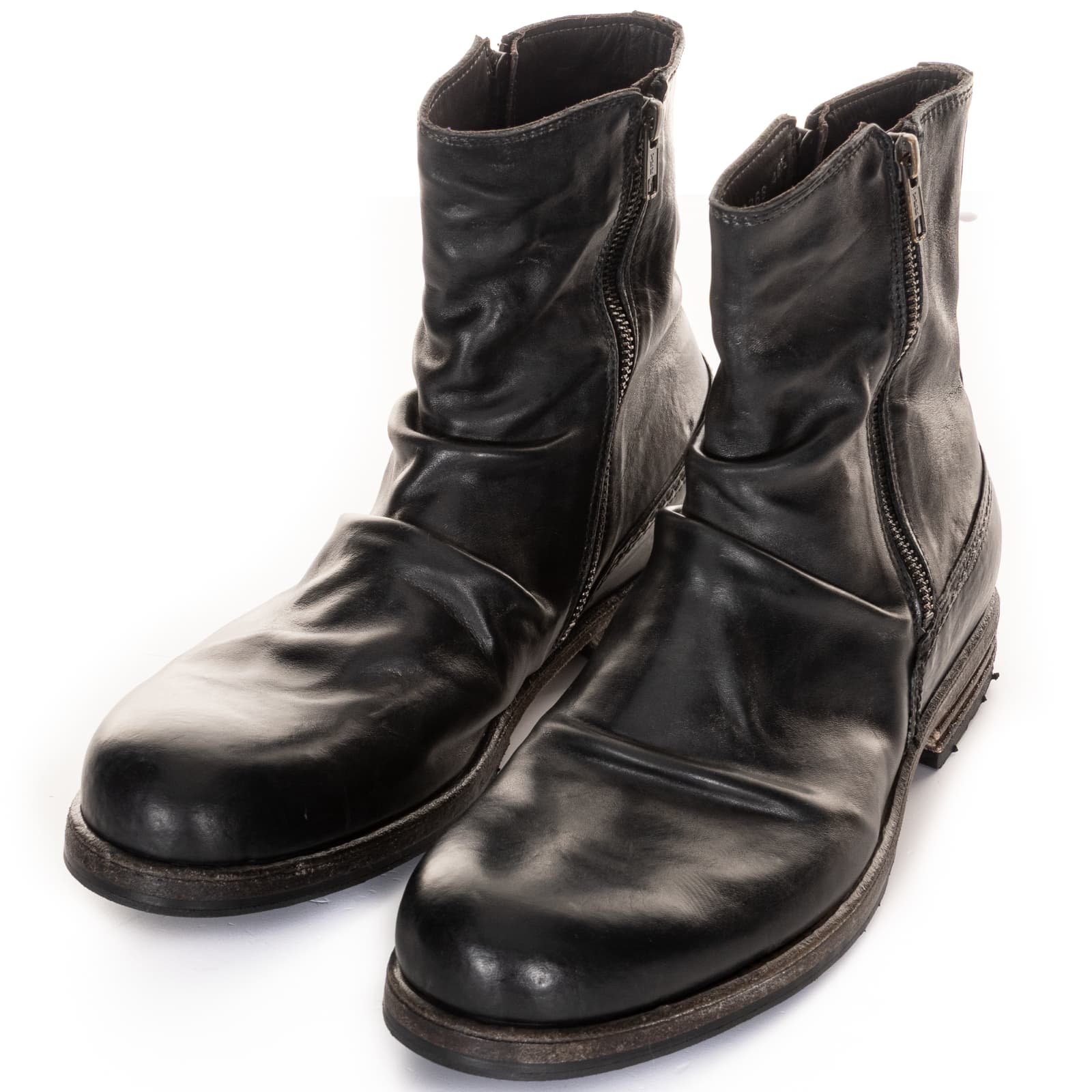 Im ‚stone washed‘ - Prozess gewinnen die Schuhe, die mit abrasiven Steinen behandelt werden, einen authentischen Vintage-Look. Beim abschließenden Finish wird die einzigartige Charakteristik – die Verläufe und Schattierungen – herausgearbeitet. Die Verwendung von erstklassigem Pferde-, Elch-, Antilopen- und Kalbsleder, in Verbindung mit besten italienischen Ledersohlen, lassen ein Unikat feinster Qualität entstehen.