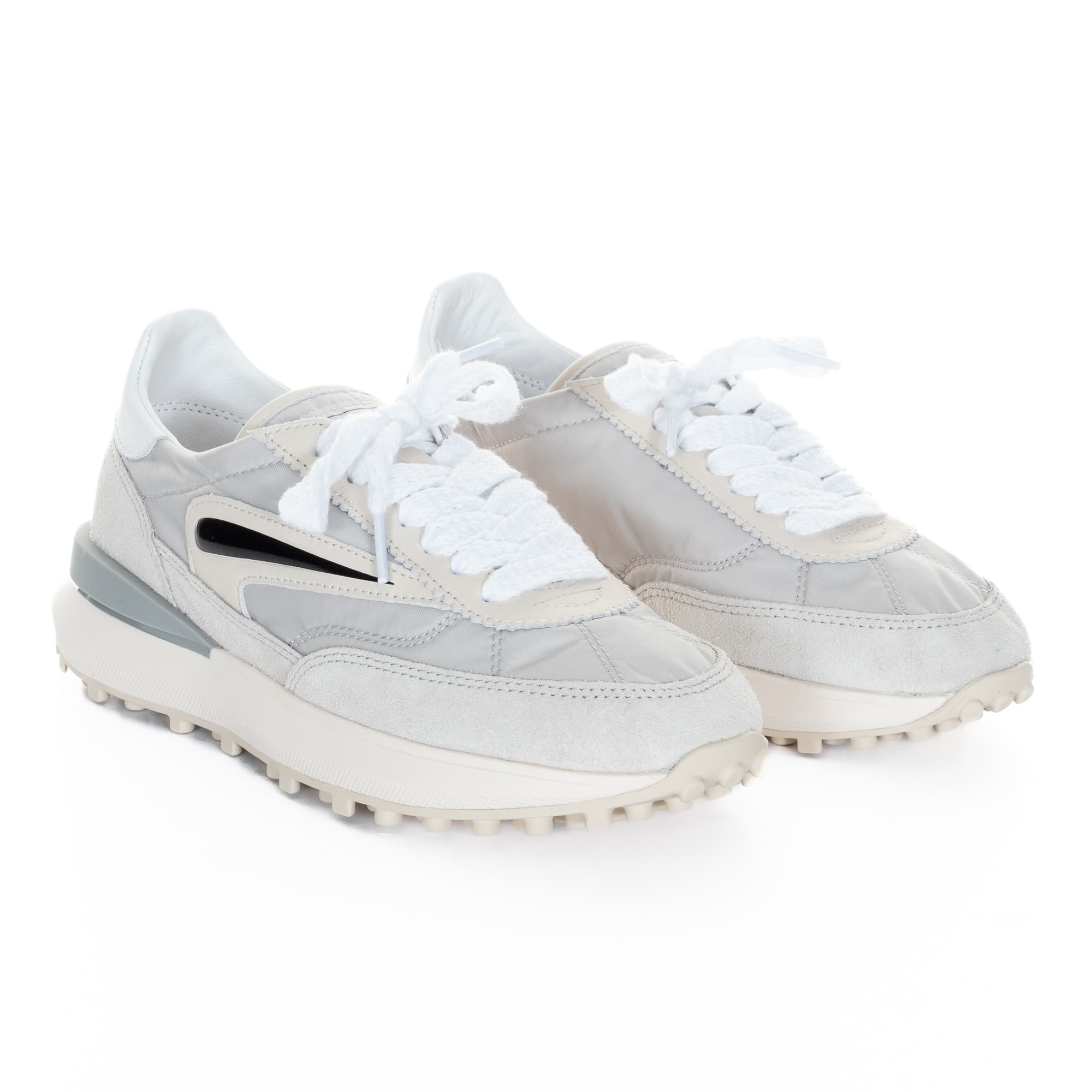 Stylische Sneakers aus grauen Nylon und Leder mit grauen Wildleder-Einsätzen. Der erhöhte Komfort und die markanten Logo-Details machen sie zum perfekten Alltagsbegleiter.