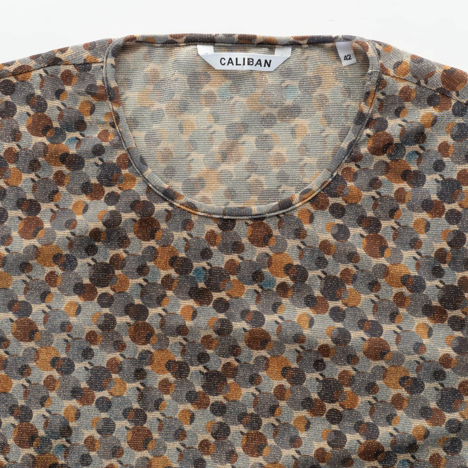 Langarm-Shirt von Caliban mit dezentem Glitzereffekt. Das körpernah geschnittene Modell punktet durch ein modernes Punktmuster in warmen Braun-, Grau- und Goldtönen auf weichem Stretchmaterial. Der feine Glanz verleiht dem Shirt eine elegante Note und macht es ideal für den Alltag oder besondere Anlässe. Rundhalsausschnitt und figurbetonter Schnitt runden das Design ab.