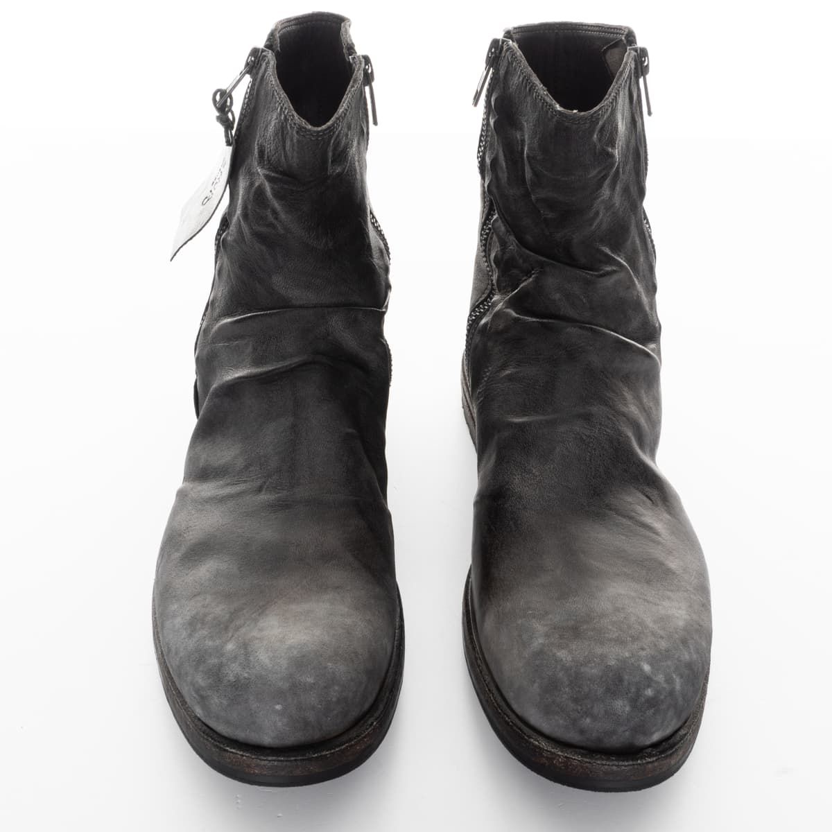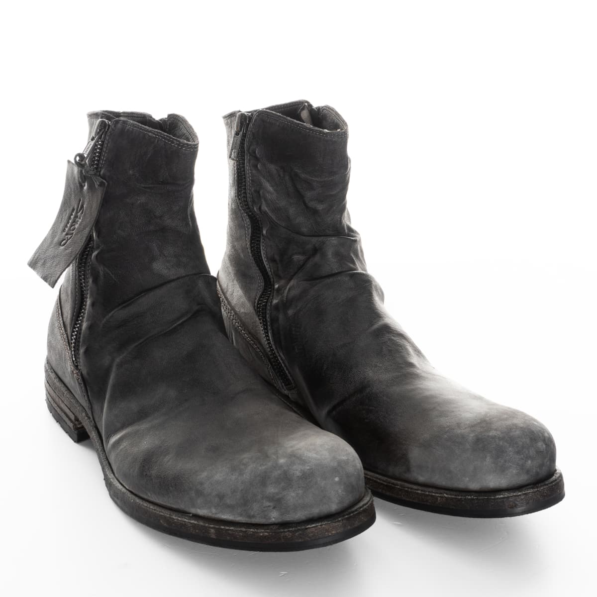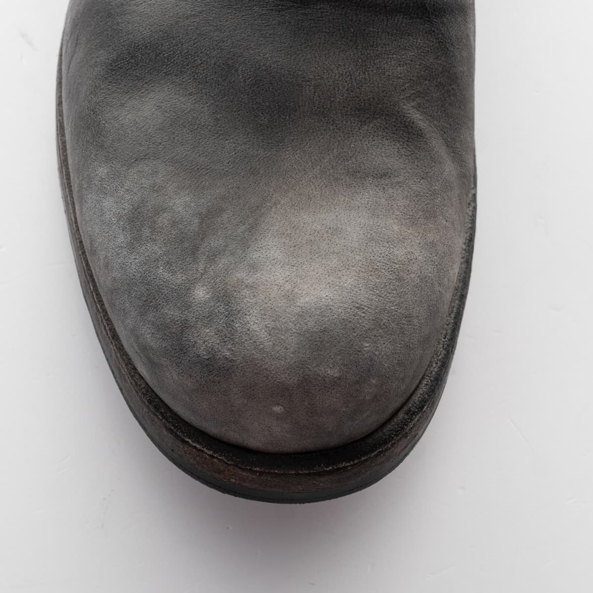 Im ‚stone washed‘ - Prozess gewinnen die Schuhe, die mit abrasiven Steinen behandelt werden, einen authentischen Vintage-Look. Beim abschließenden Finish wird die einzigartige Charakteristik – die Verläufe und Schattierungen – herausgearbeitet. Die Verwendung von erstklassigem Pferde-, Elch-, Antilopen- und Kalbsleder, in Verbindung mit besten italienischen Ledersohlen, lassen ein Unikat feinster Qualität entstehen.