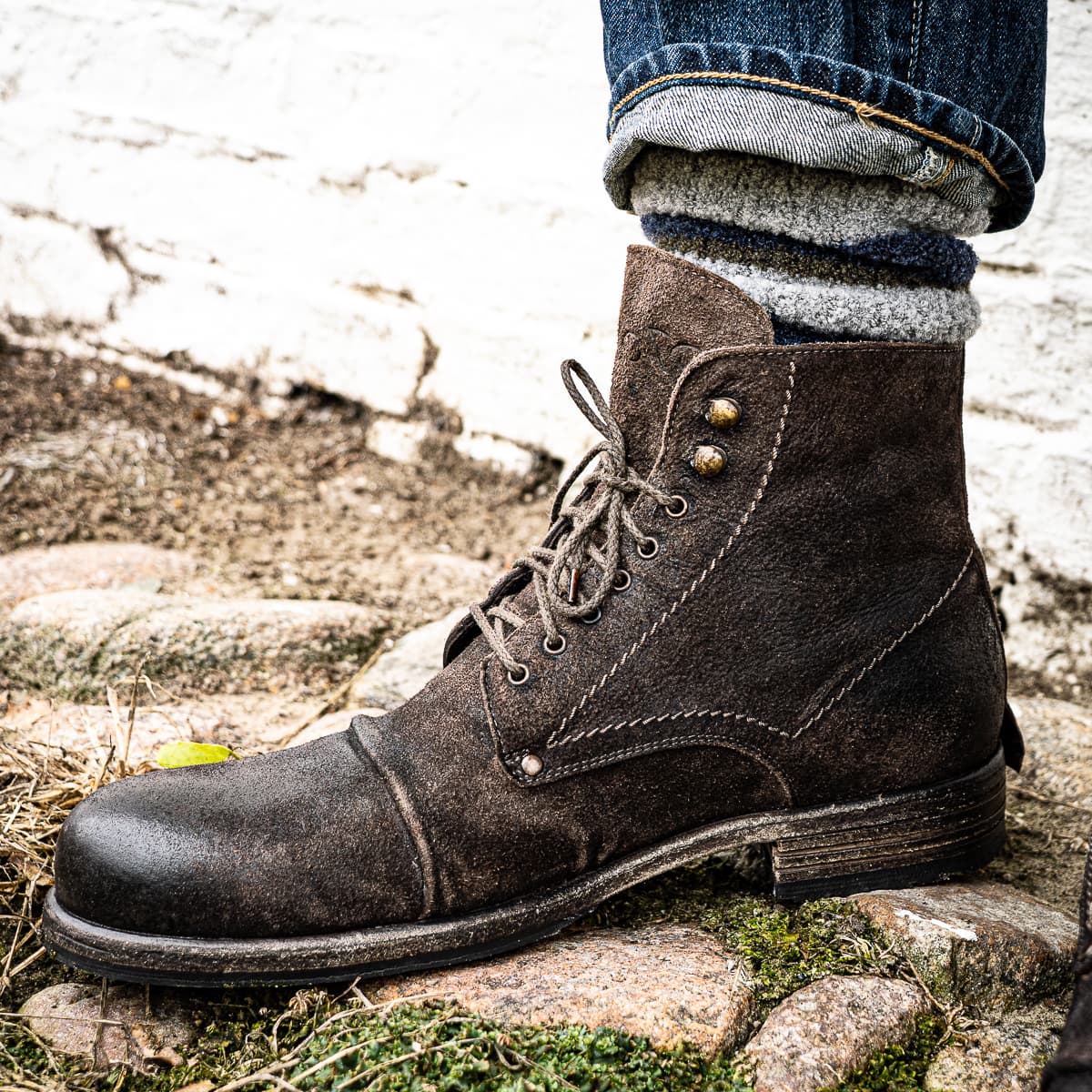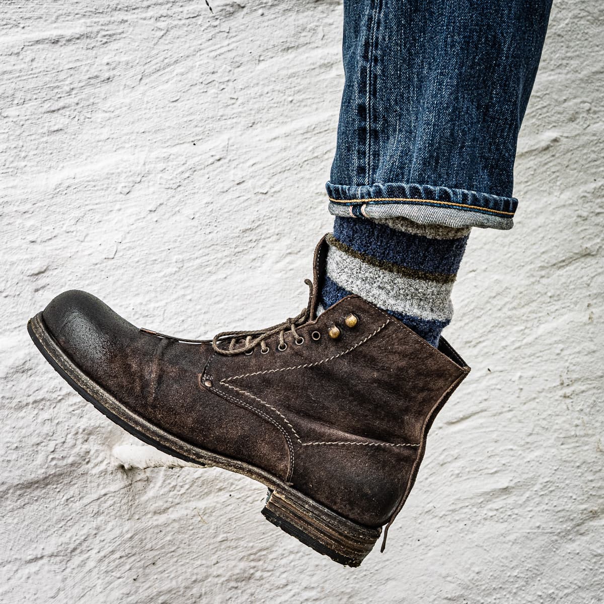 Der Shoto 5998 Boot ist ein charakterstarker Herrenschuh aus Pferdeleder (Reverse), der durch die spezielle Waschung und das gebürstete Finish seinen einzigartigen Look erhält. Die Kombination aus rustikaler Oberfläche und handwerklicher Verarbeitung macht jeden Schuh zu einem unverwechselbaren Einzelstück. Gefüttert mit feinem Kalbsleder, bietet er hohen Tragekomfort. Die robuste Vibram-Profilsohle in Verbindung mit einer Lederbrandsohle sorgt für Langlebigkeit und sicheren Halt.