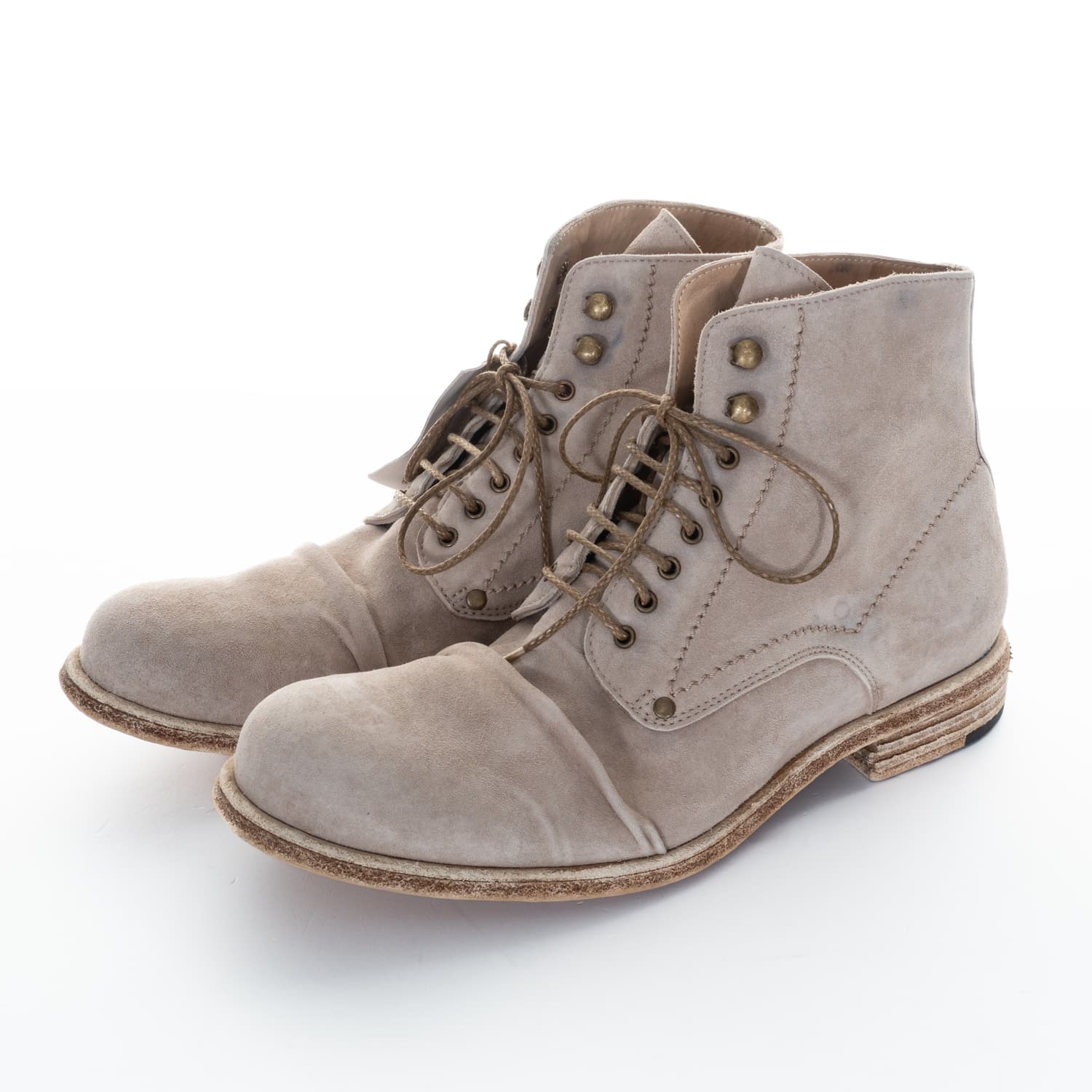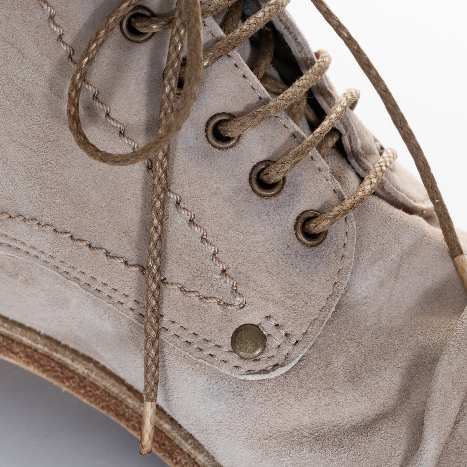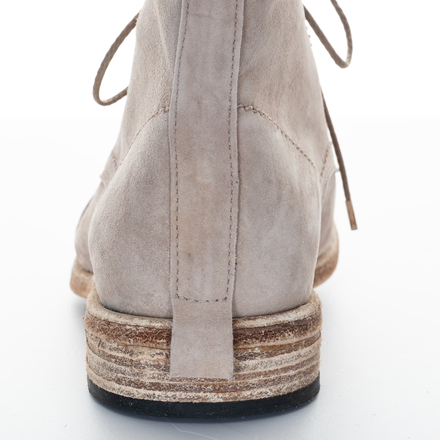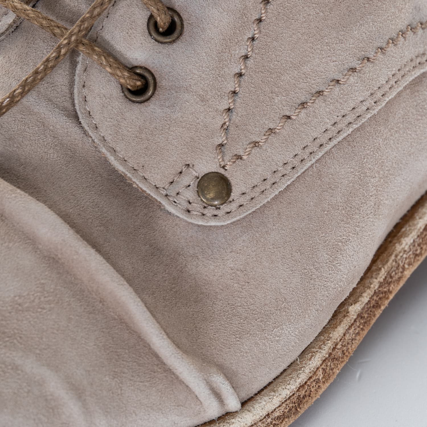 Im ‚stone washed‘ - Prozess gewinnen die Schuhe, die mit abrasiven Steinen behandelt werden, einen authentischen Vintage-Look. Beim abschließenden Finish wird die einzigartige Charakteristik – die Verläufe und Schattierungen – herausgearbeitet. Die Verwendung von erstklassigem Pferde-, Elch-, Antilopen- und Kalbsleder, in Verbindung mit besten italienischen Ledersohlen, lassen ein Unikat feinster Qualität entstehen.