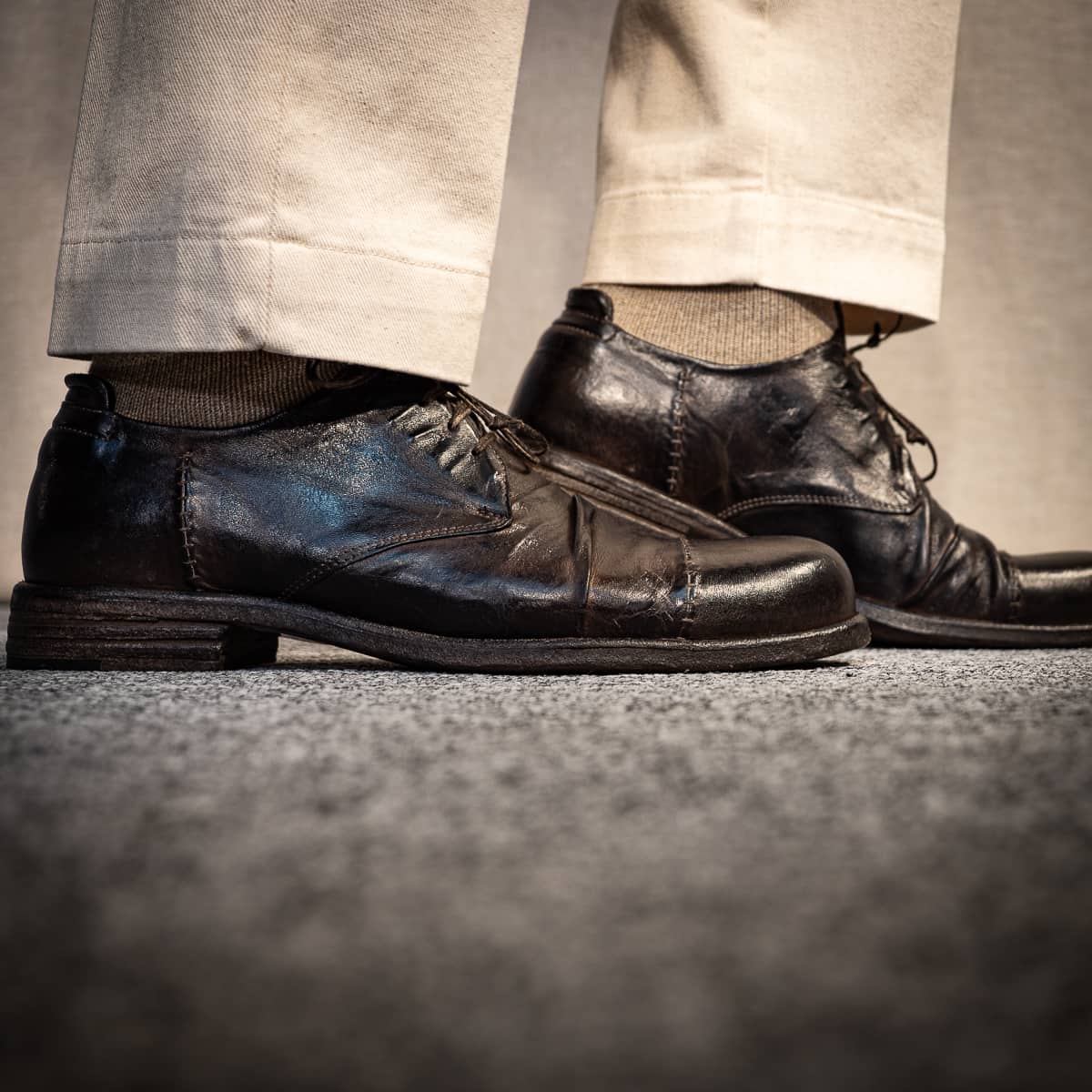 In traditioneller Handwerkskunst fertigt Stefano Medori, in zweiter Generation mit großer Leidenschaft einzigartige Schuhe. Von Hand wird jeder Schuh zunächst in ein Färbebad getaucht und anschließend für mindestens 24 Stunden an der Luft getrocknet. Dadurch entsteht eine einzigartige Farbgebung und vielfältige Schattierungen – jede Waschung ist einzigartig.