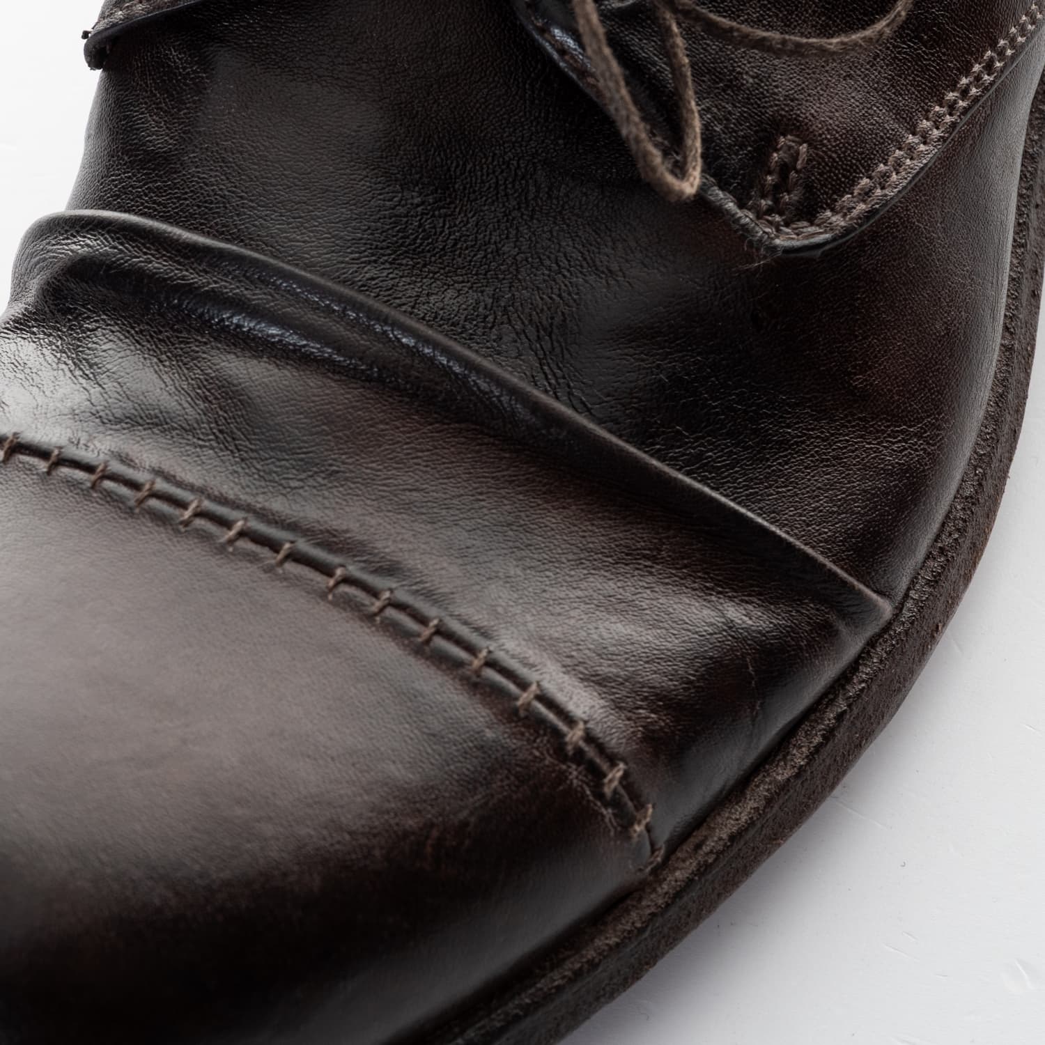 Der Halbschuh 7614 aus Känguruleder mit der markanten Naht ist ein weiteres Meisterwerk aus der Schuhmanufaktur Shoto. Durch das spezielle Färbeverfahren, sowie andere spezielle Behandlungstechniken (Wasch-, Färbetechniken), ist jedes Exemplar einzigartig. Aufgrund dessen, individueller Handarbeit und der Naturbedingtheit der Materialien, können die Farben, Prägung und Struktur leicht abweichen. Jedes Exemplar ist einzigartig und ein echtes Unikat, gefertigt in liebevoller Handarbeit.