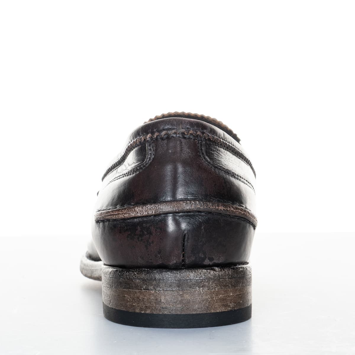 Der handgefertigte Halbschuh von Shoto interpretiert den klassischen Loafer auf charaktervolle Weise neu. Gefertigt aus robustem Pferdeleder und in einem aufwendigen Wasch- und Färbeprozess veredelt, erhält jedes Paar seine individuelle, lebendige Oberfläche mit feinen Nuancen und natürlicher Patina. Das ungefütterte Design unterstreicht den authentischen Charakter und sorgt zugleich für ein direktes, angenehmes Tragegefühl.