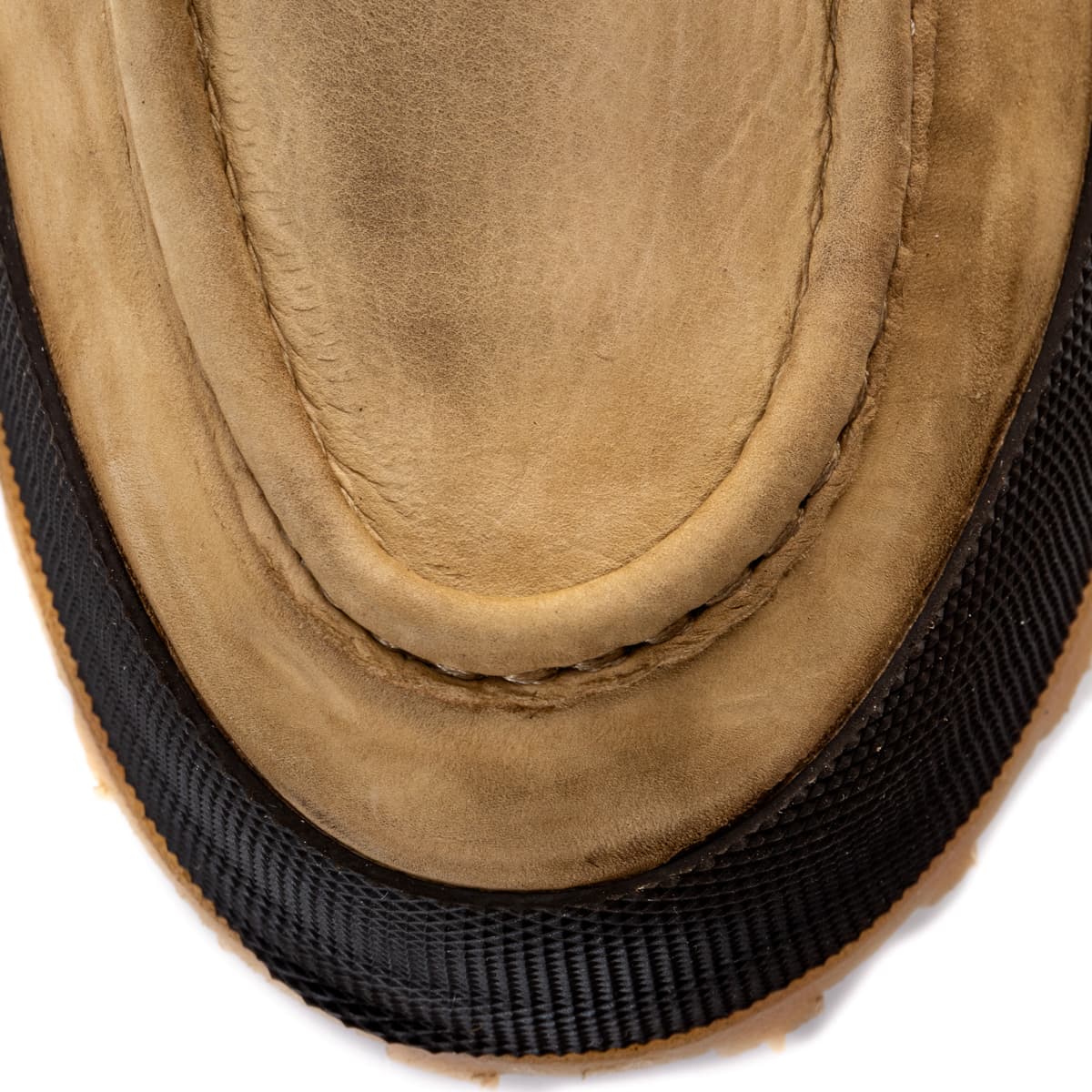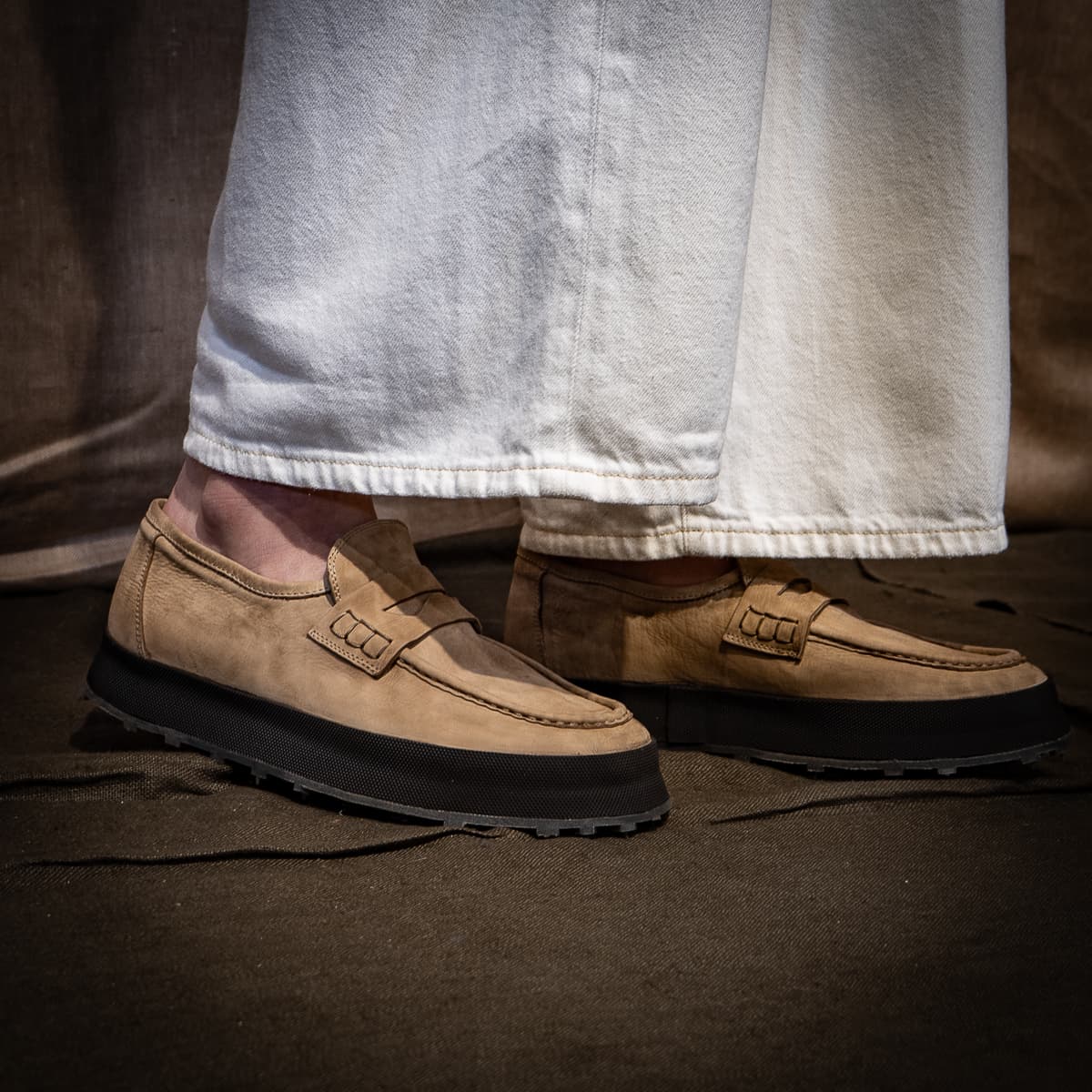 Im ‚stone washed‘ - Prozess gewinnen die Schuhe, die mit abrasiven Steinen behandelt werden, einen authentischen Vintage-Look. Beim abschließenden Finish wird die einzigartige Charakteristik – die Verläufe und Schattierungen – herausgearbeitet. Die Verwendung von erstklassigem Pferde-, Elch-, Antilopen- und Kalbsleder, in Verbindung mit besten italienischen Ledersohlen, lassen ein Unikat feinster Qualität entstehen.