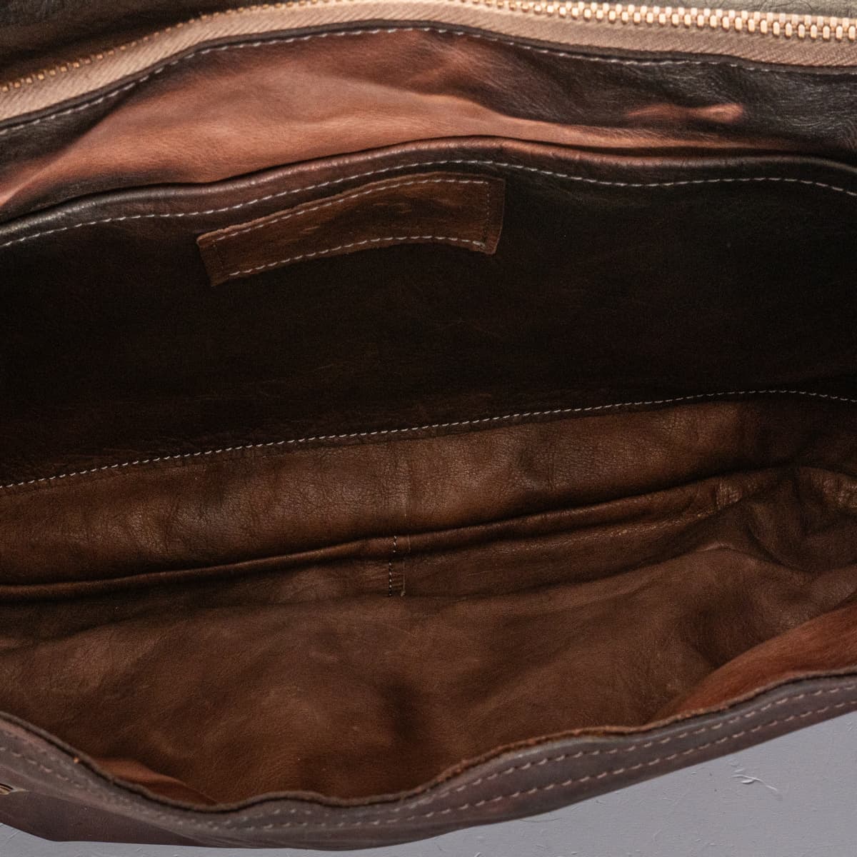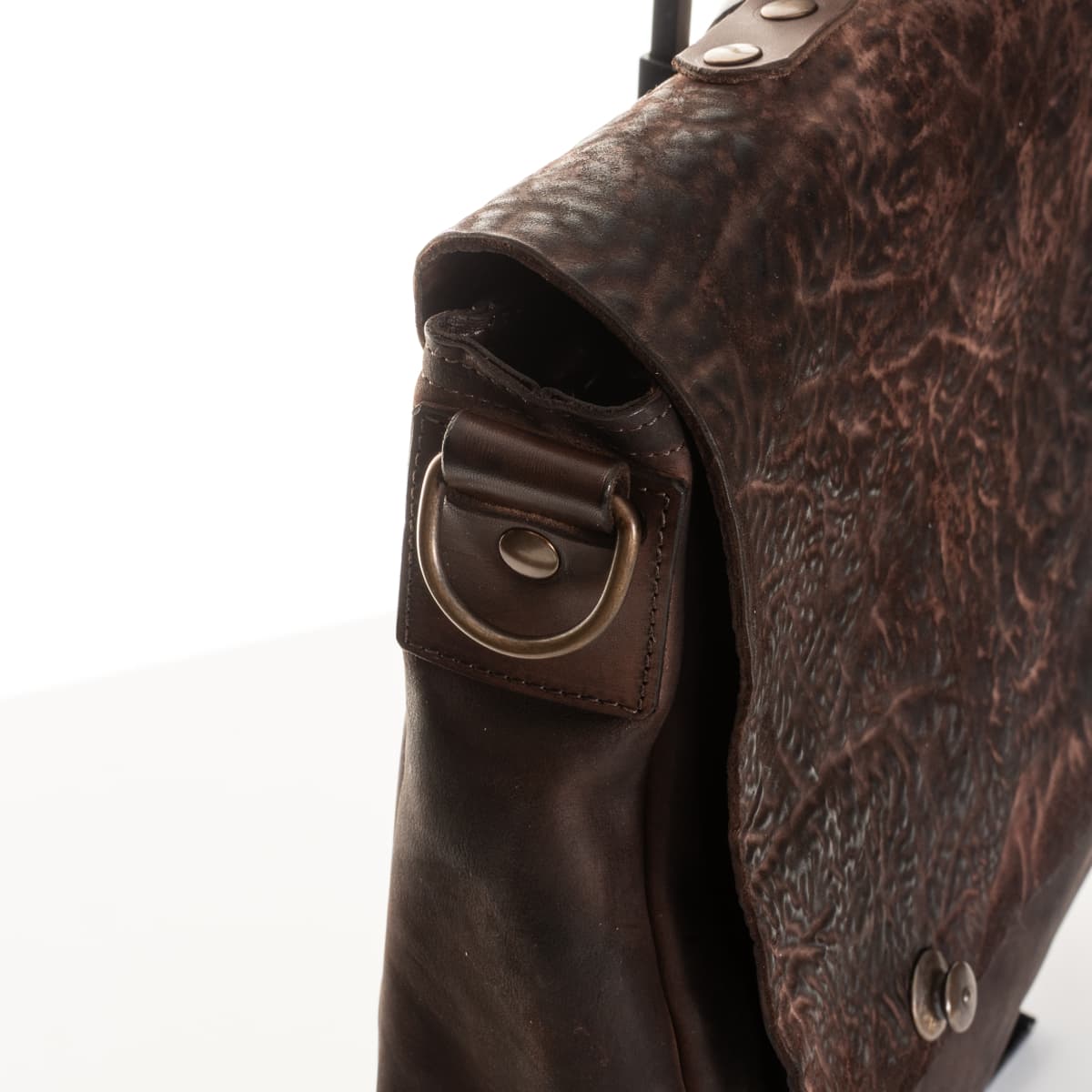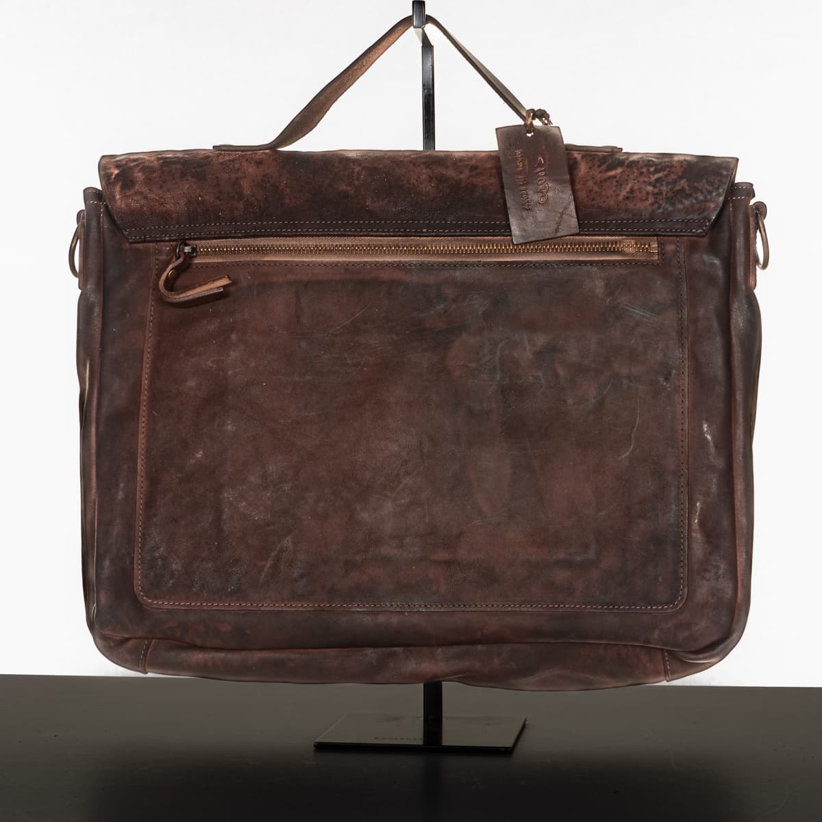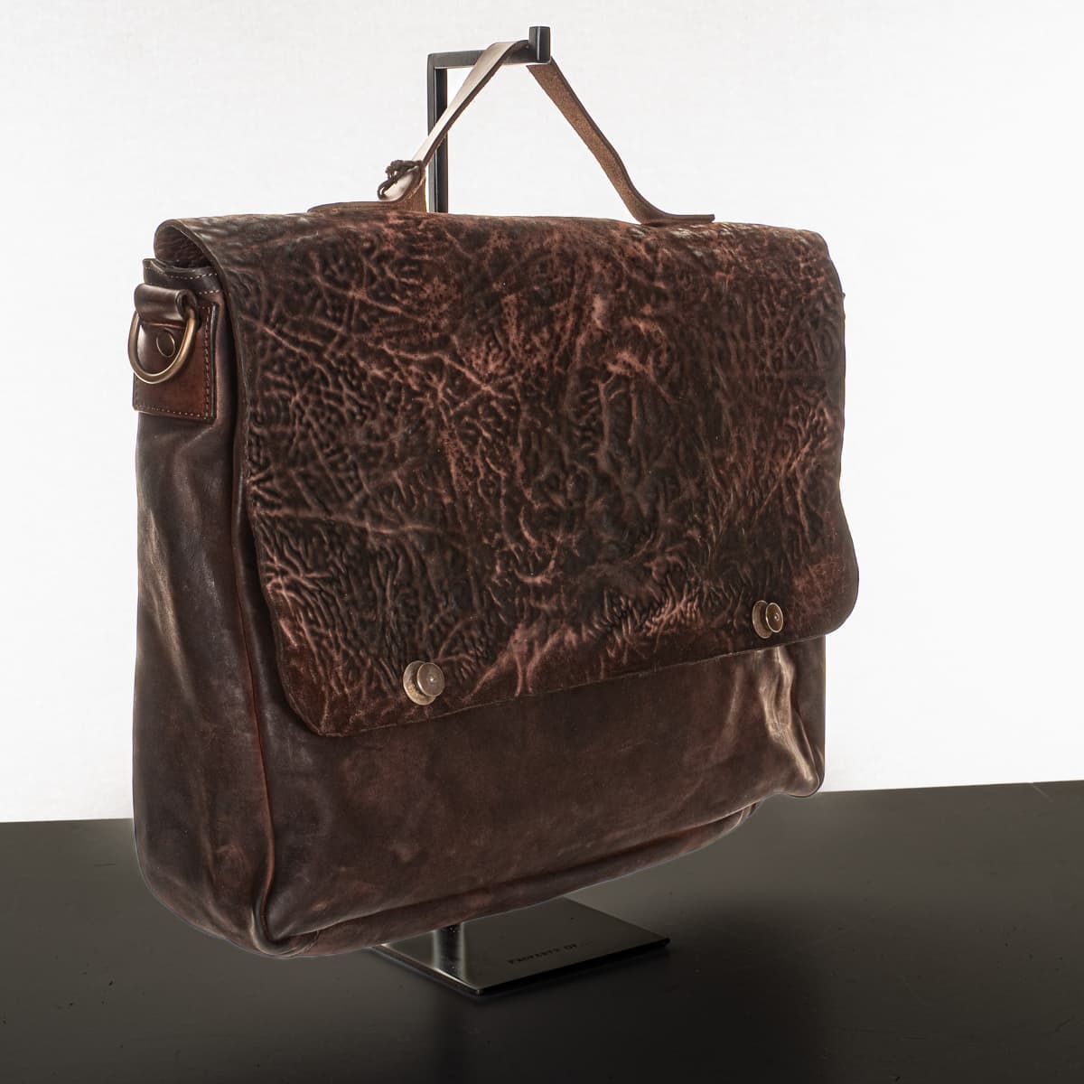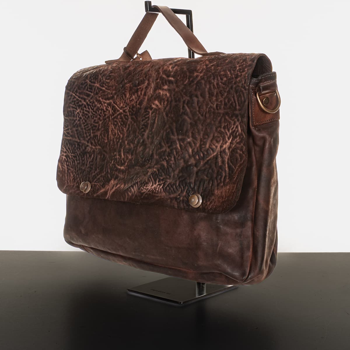 Hochwertiger Messenger Bag aus 100 % Pferdeleder (Horse Nappa) von Shoto. Die Tasche besteht aus besonders geschmeidigem Pferdeleder, dessen Oberfläche durch spezielle Wasch- und Färbetechniken eine markante, lebendige Struktur erhält. Die ausgeprägte Narbung, feine Faltenbildung sowie natürliche Farbnuancen verleihen jedem Exemplar einen individuellen Unikat-Charakter. Durch den soften Griff und die robuste Verarbeitung eignet sich der Messenger Bag ideal für den täglichen Einsatz – ob im beruflichen Alltag oder in der Freizeit.
