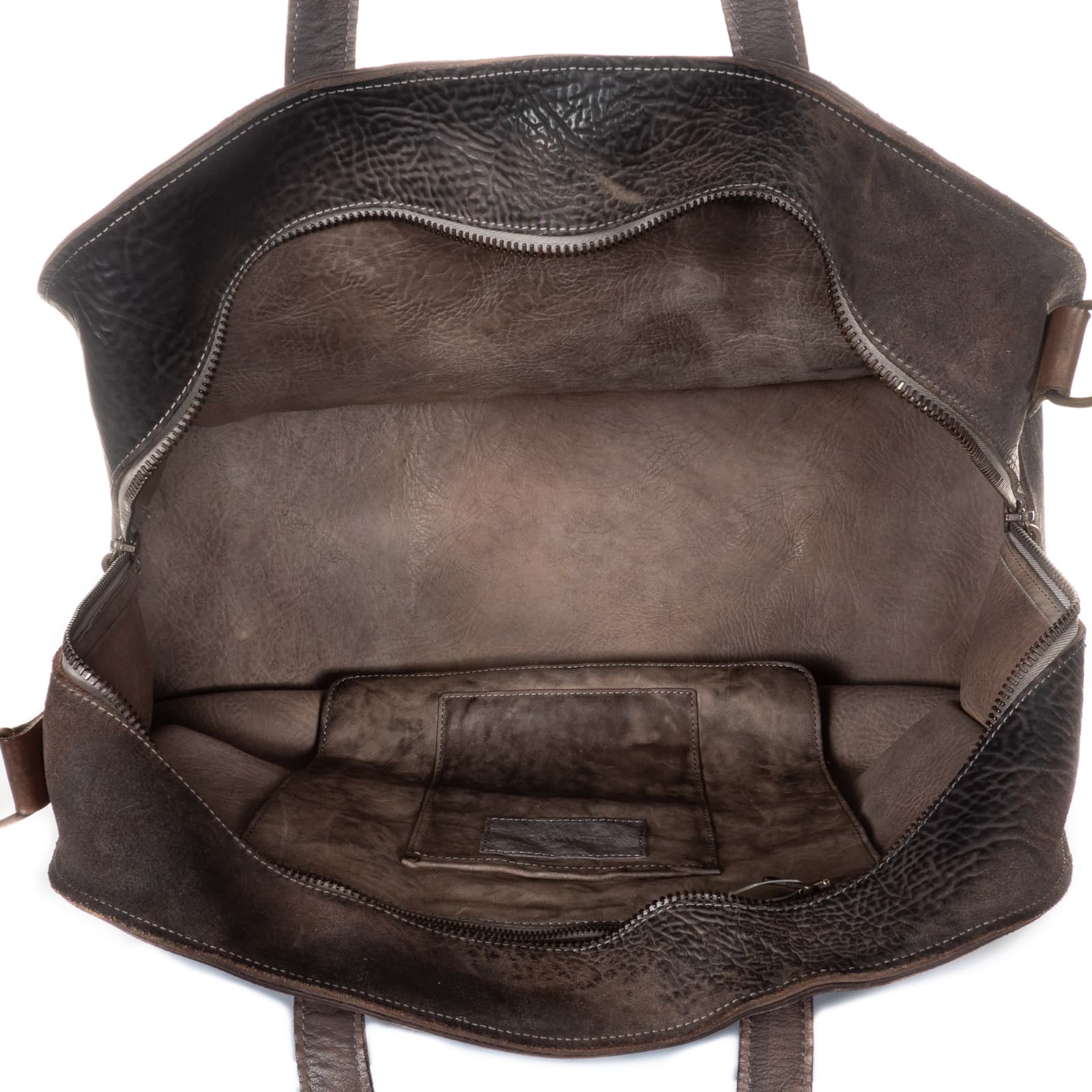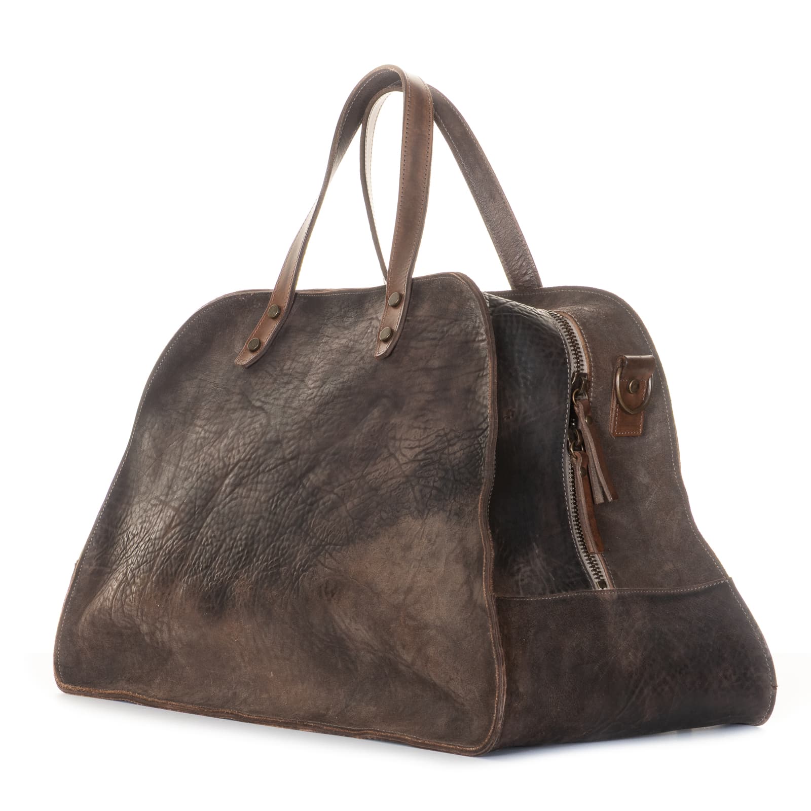 Die Reisetasche "Ugenio" von Shoto ist etwas, was Sie lange Zeit begeistern wird. Gefertigt aus robustem Pferdeleder, ist die Reisetasche nicht nur schön anzusehen, sondern überzeugt auch durch Qualität und gute Verarbeitung. Das Leder ist bei diesem Modell so behandelt, dass teilweise ein Reverse-Effekt entsteht. Auch dieses Modell wird tauchgefärbt und anschließend gewaschen. Durch diese Techniken wird die besondere Farbgebung und Maserung des Leders noch verstärkt. Das hier verwendete Pferdeleder (horse-foca, Hinterteil des Pferdes) zeichnet durch besondere Maserung aus, da dieser Teil des Pferdes besonders stark durchblutet ist.