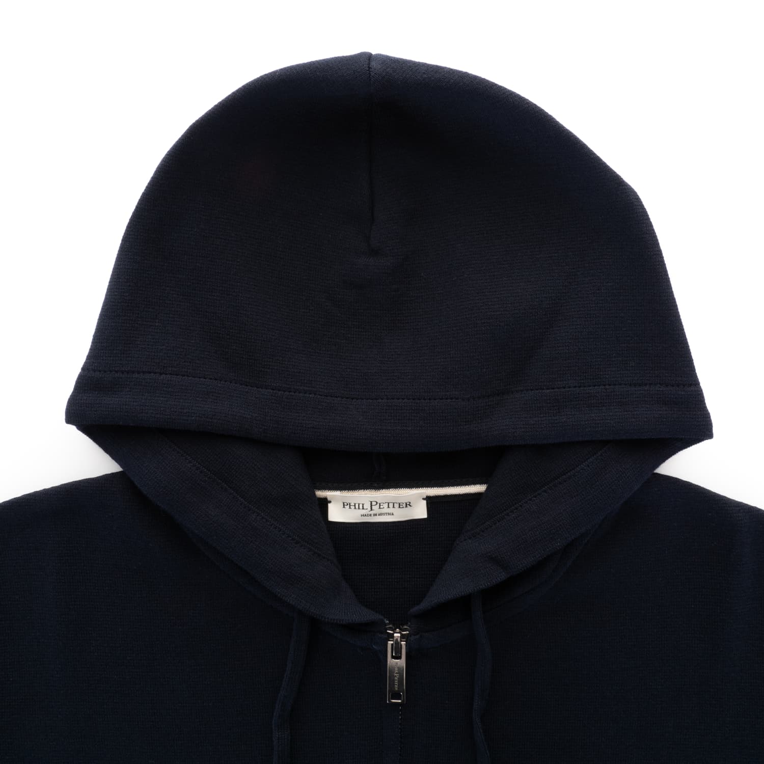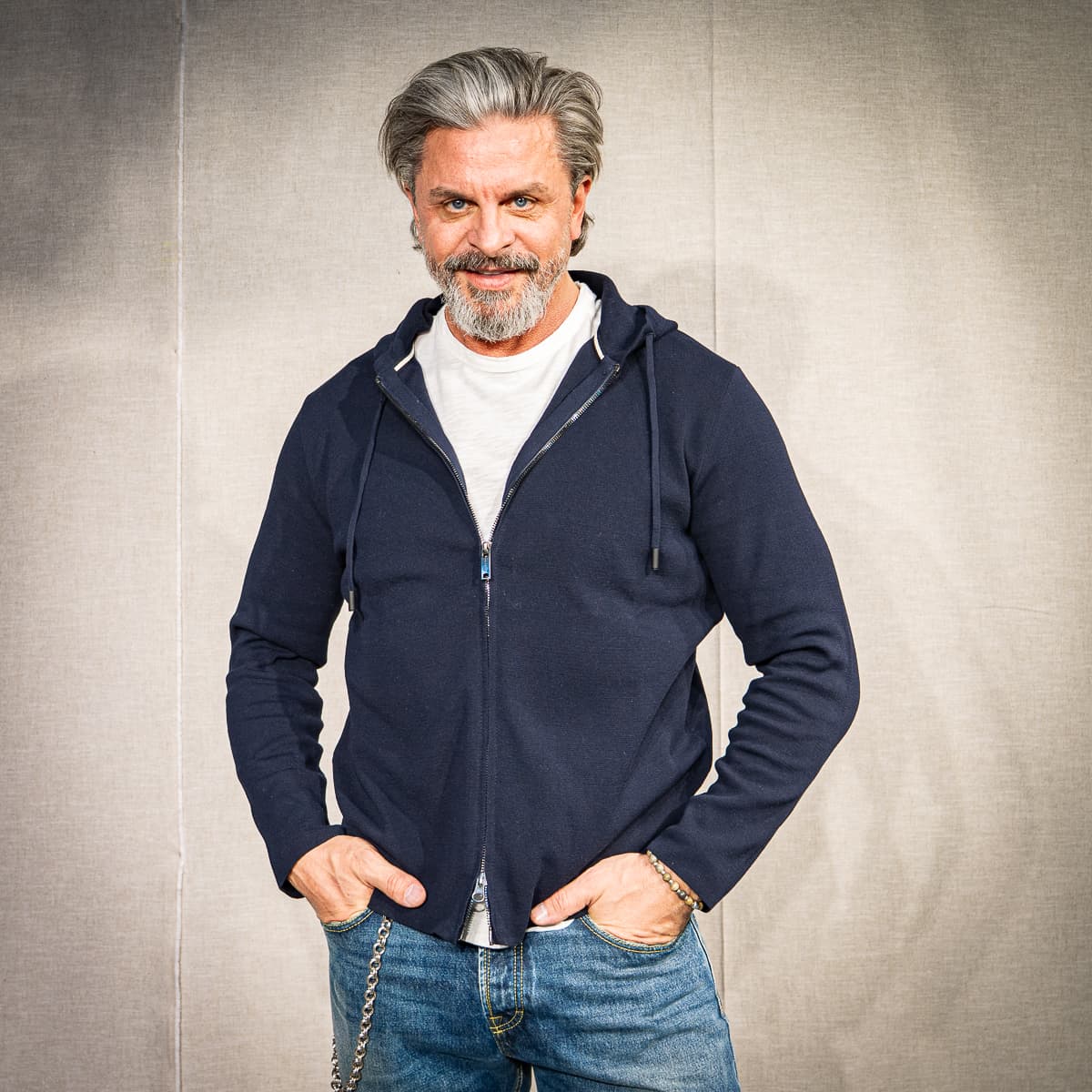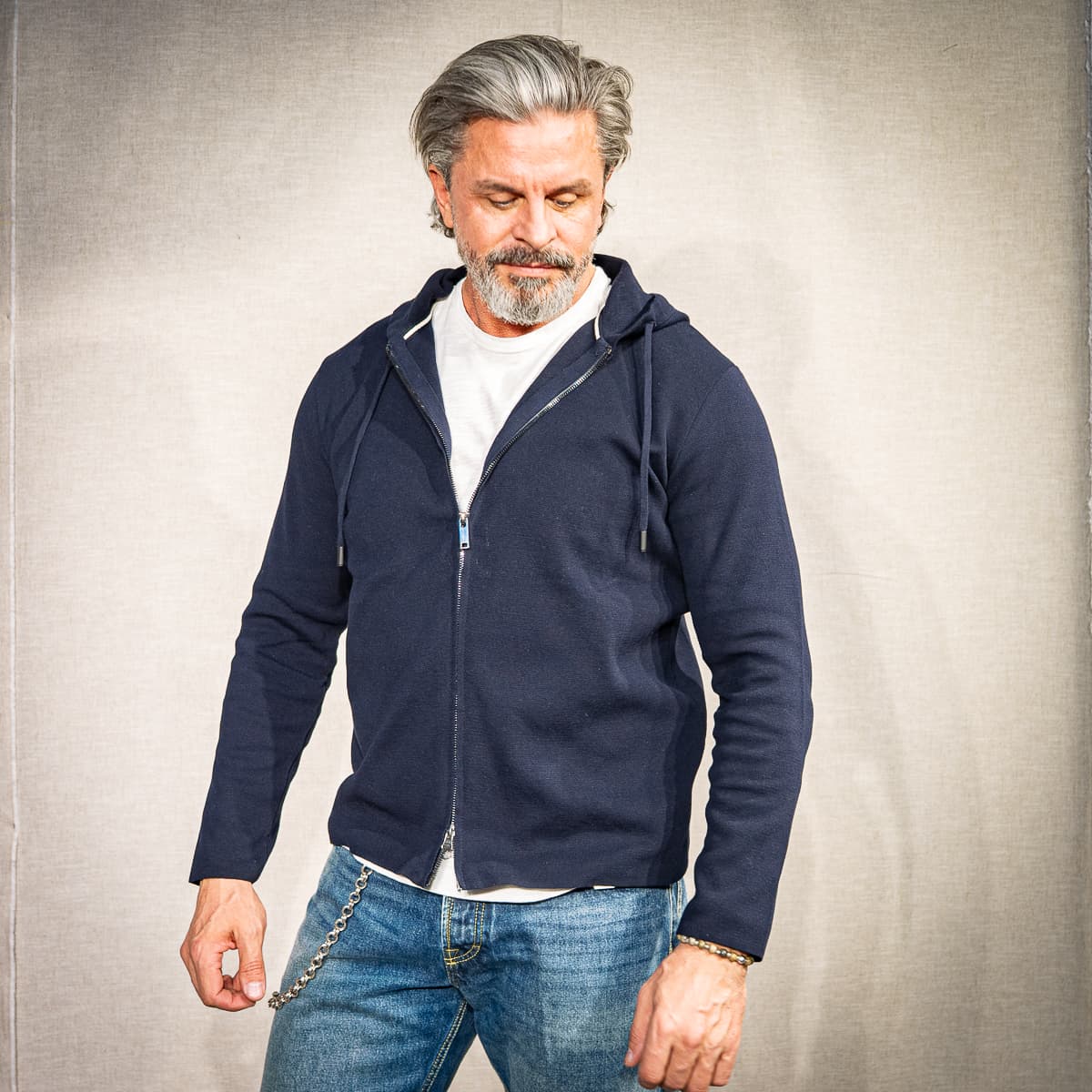 Lässige Zipperjacke mit Kapuze aus Milanoripp von Phil Petter. Kompakt gestricktes, feinstes Milano ist ideal für die Sommer-Varianten von Zipperjacken oder lässigem Stricksweat.