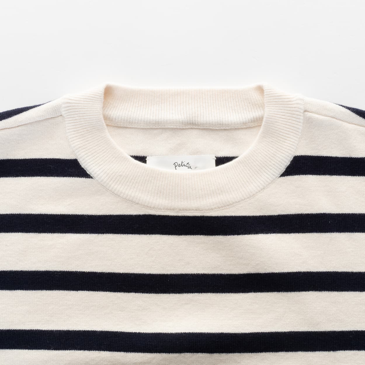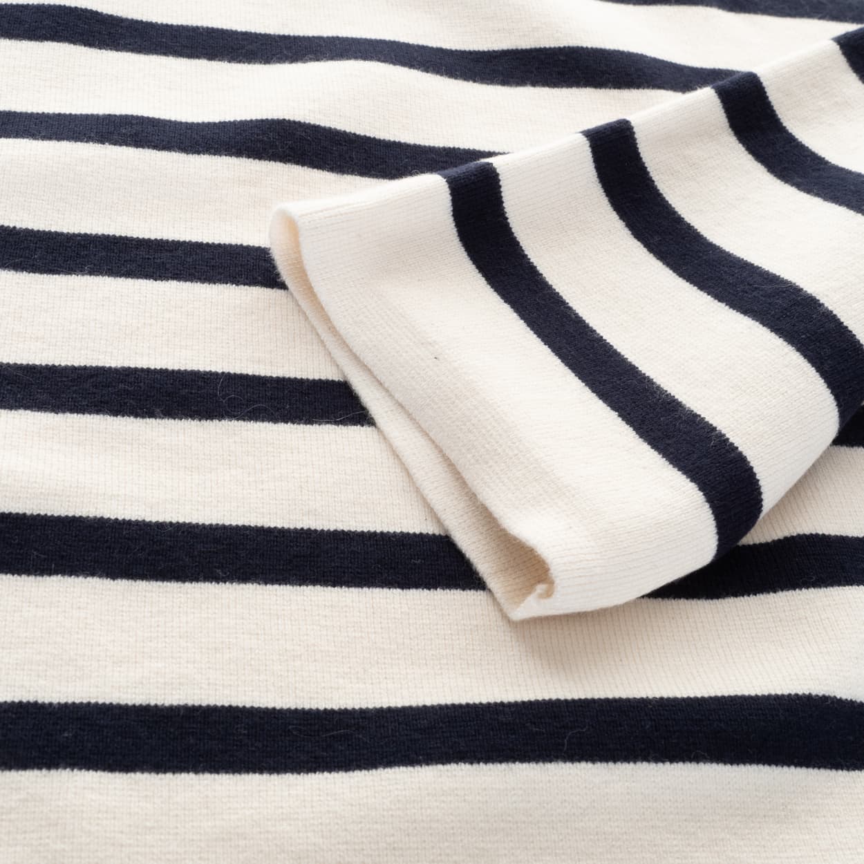 Feiner, gestreifter Strickpullover „Biscote“ von Des Petits Hauts. Das Modell überzeugt durch seinen entspannten Schnitt und das harmonische Streifenbild in Creme mit Marine- oder Mousse-Akzenten. Die hochwertige Materialmischung mit Baumwolle, Viskose und einem feinen Anteil Kaschmir sorgt für eine angenehme Haptik, leichte Wärme und hohen Tragekomfort. Ein vielseitiger Pullover für den Alltag – lässig, feminin und zeitlos.