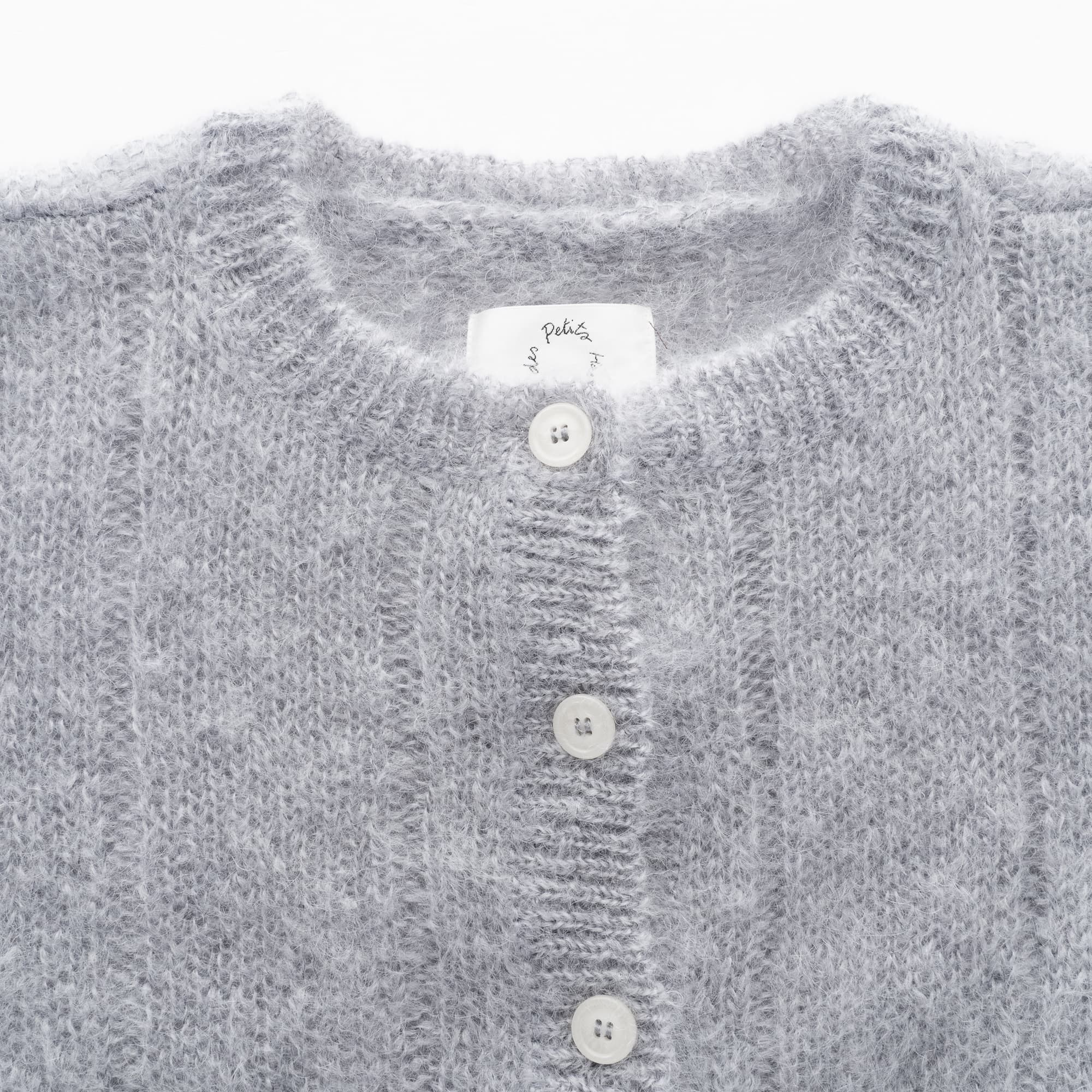 Die Strickjacke von Des Petits Hauts verbindet feminine Leichtigkeit mit klassischer Handwerkskunst. Der boxy Cut sorgt für eine moderne Silhouette, während die durchgehende Knopfleiste und der Rundhalsausschnitt für einen zeitlosen Look stehen. Feine Rippbündchen an Ärmeln und Saum vollenden das Design. Die weiche Mischung aus Kid-Mohair, Wolle und Polyamid verleiht der Jacke ihre flauschige Struktur und ein angenehmes Tragegefühl.
