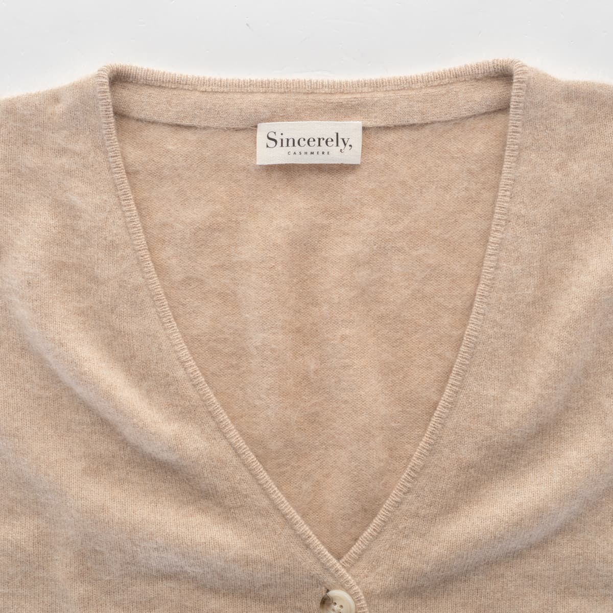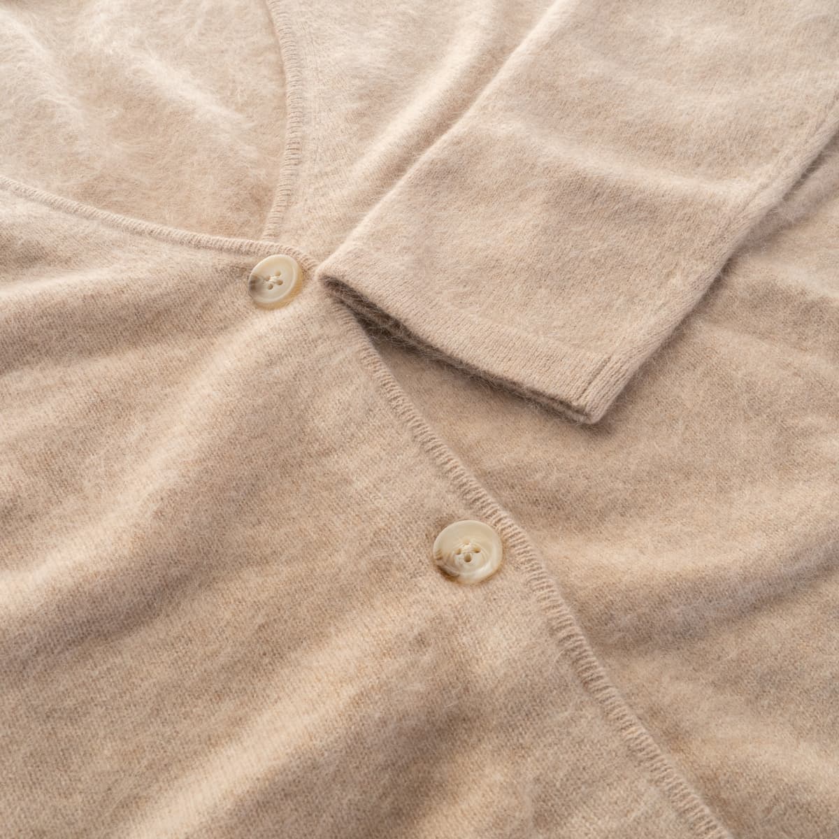 Der Cardigan von Sincerely wird aus 100 % Kaschmir gefertigt und überzeugt mit einer außergewöhnlich weichen, flauschigen Haptik. Die edle Naturfaser sorgt für höchsten Tragekomfort und eine luxuriöse Optik. Der tiefe V-Ausschnitt und die gerade, leicht verkürzte Silhouette verleihen dem Modell eine feminine und moderne Note. Dank der feinen Strickstruktur lässt sich die Jacke vielseitig kombinieren – ob als softer Begleiter im Alltag oder als elegantes Layering-Piece.