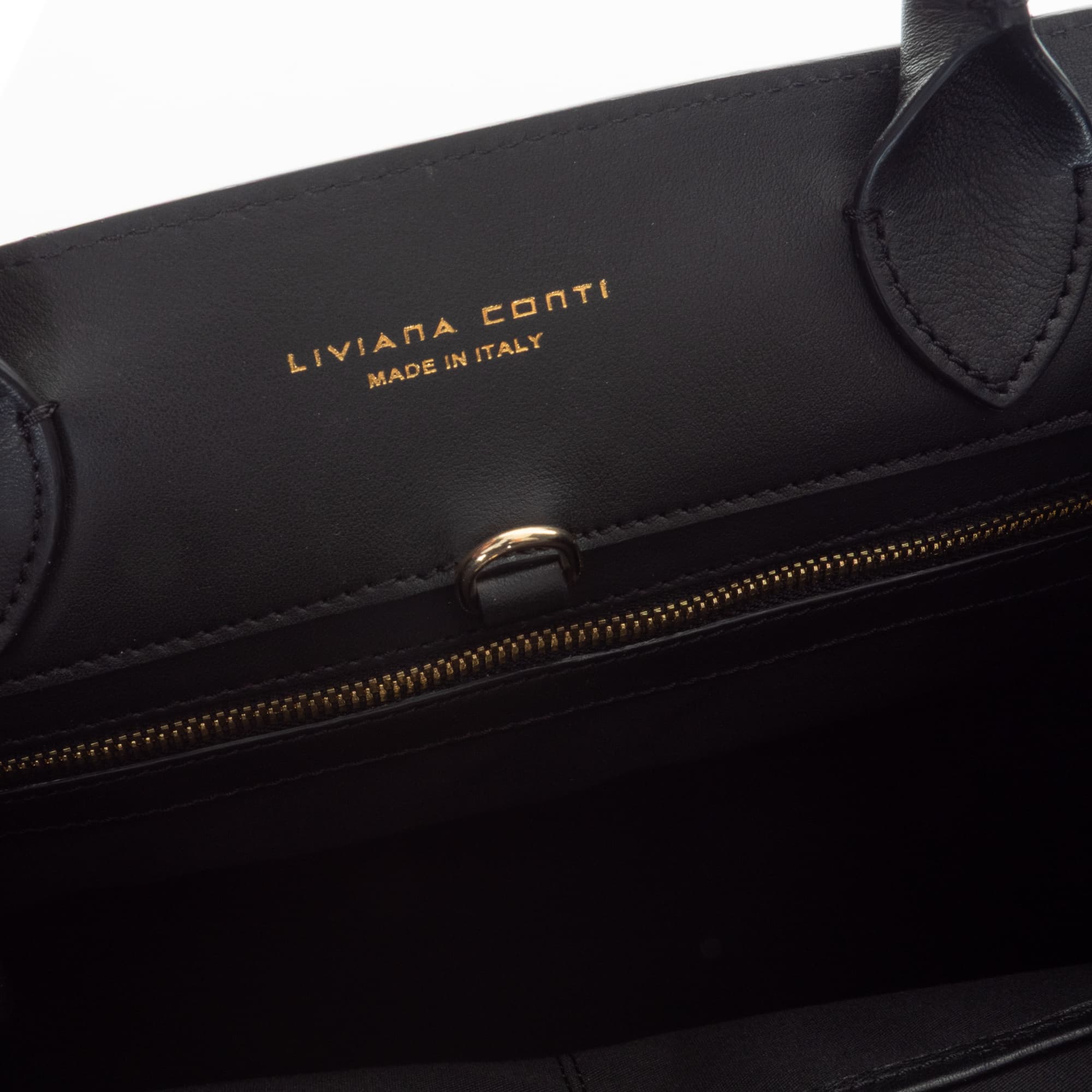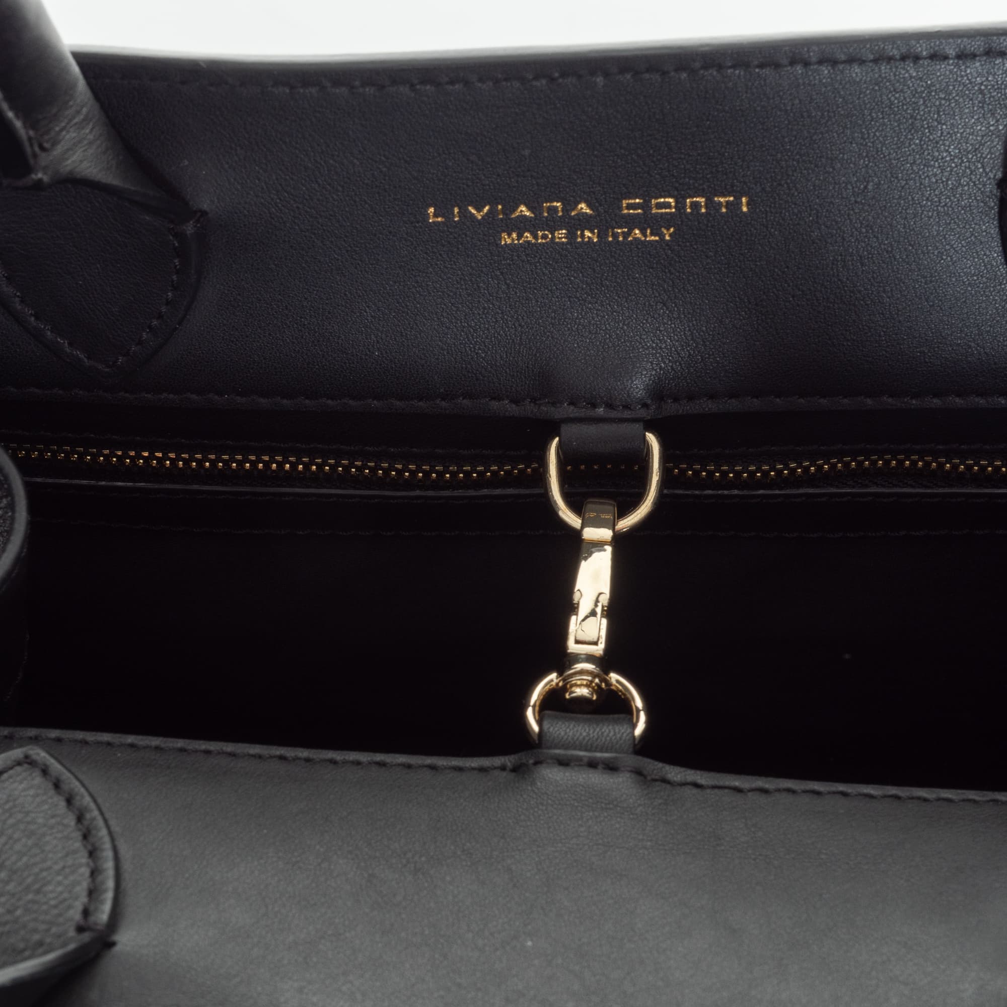 Diese stilvolle Handtasche von Liviana Conti überzeugt mit ihrem minimalistischen Design und hochwertigem Glattleder. Die schlichte Silhouette wird durch einen praktischen Karabiner-Verschluss ergänzt, während das durchdachte Innenleben mit einem Reißverschlussfach und einem Steckfach für Smartphone & Co. überzeugt. Dank der verstellbaren Seitenriemen kann die Form individuell angepasst werden. Ein zeitloses Accessoire für den stilbewussten Auftritt!
